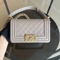 Caviar Boy Small 20CM Quilted Grained Calfskin Light Grey Gray Golden Hardware Series 23