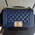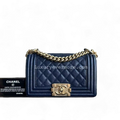 Chanel Boy Small - Caviar Quilted Grained Calfskin Dark Blue Golden Hardware Series 26