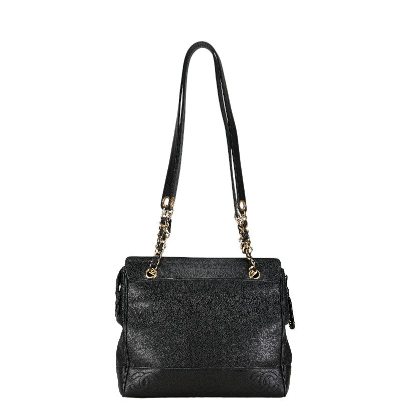Chanel Caviar Chain Shoulder Bag Black Gold