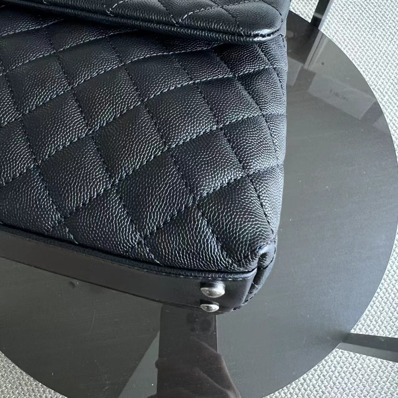 Caviar Coco Handle Large Quilted Grained Calfskin Black Silver Hardware Series 23