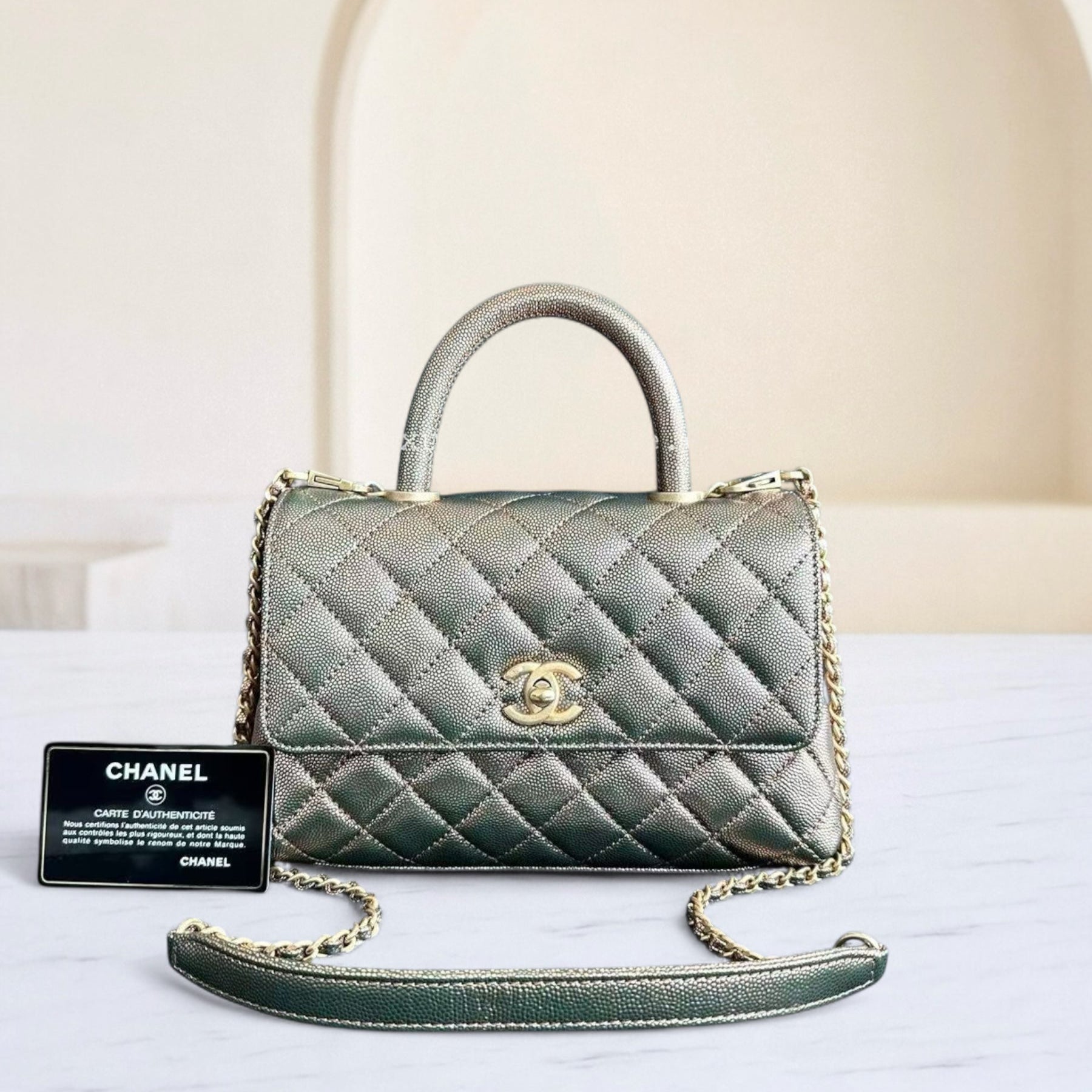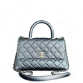 Chanel Caviar Coco Handle Small Grained Calfskin Metallic Silver Golden Hardware Series 28