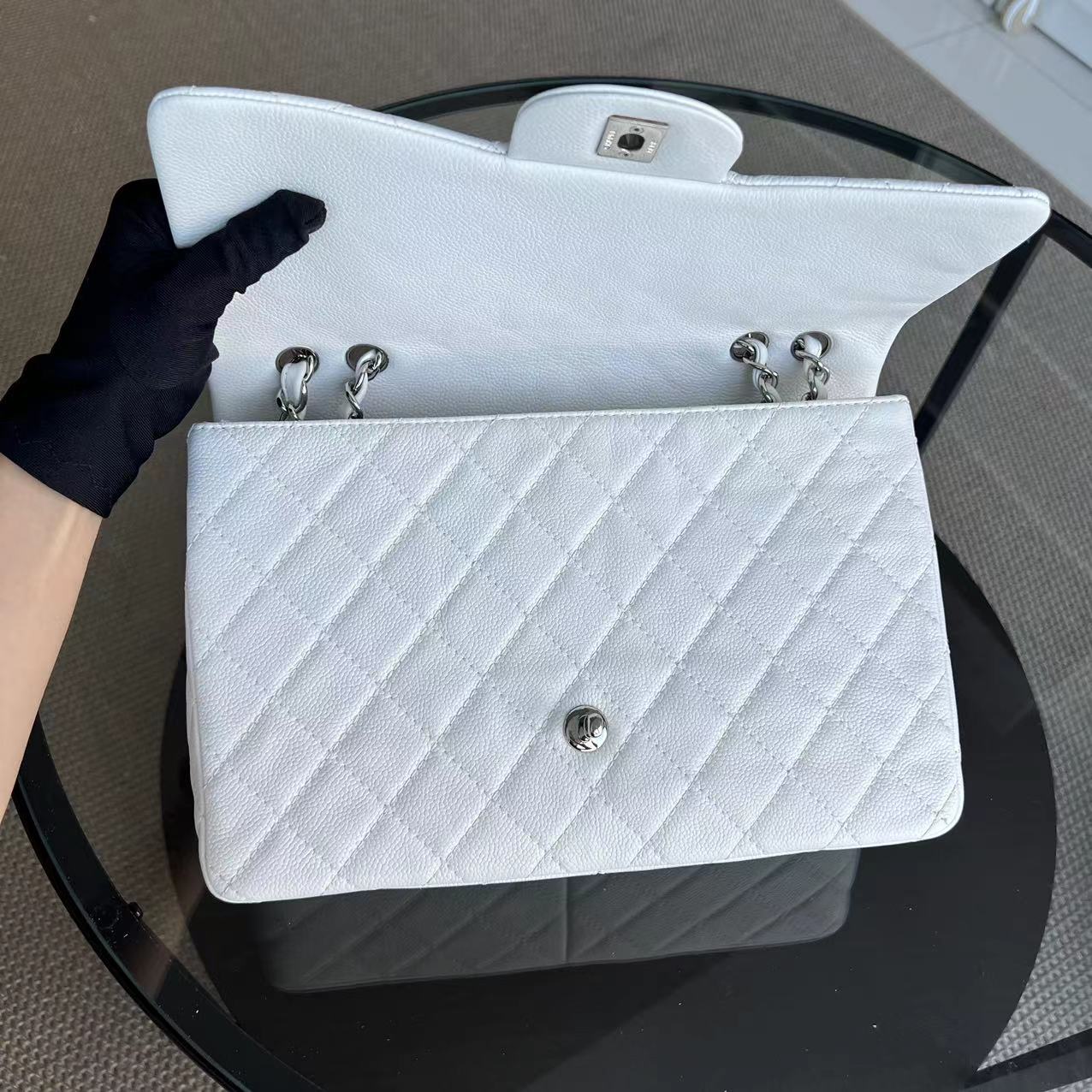 Caviar Jumbo Classic Flap Quilted Calfskin White Silver Hardware Series 12