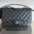 Caviar Jumbo Classic Flap Single Flap Quilted Calfskin Black GHW No 13