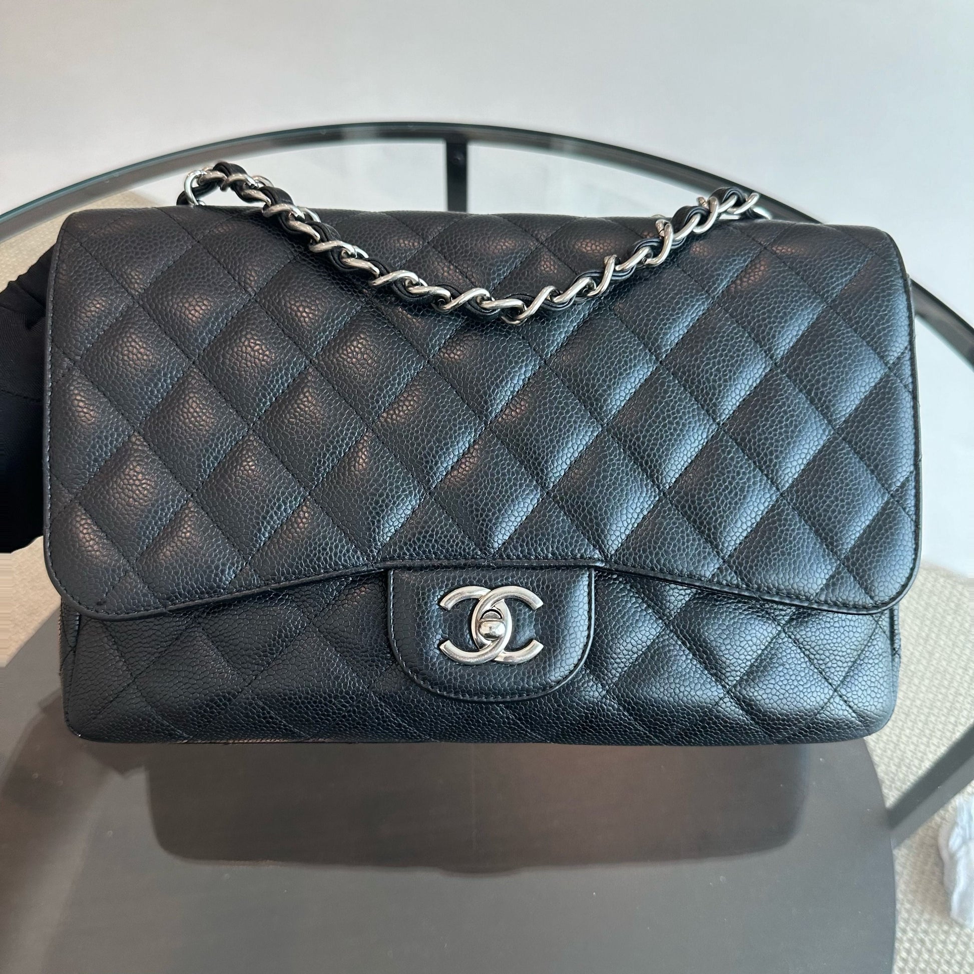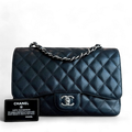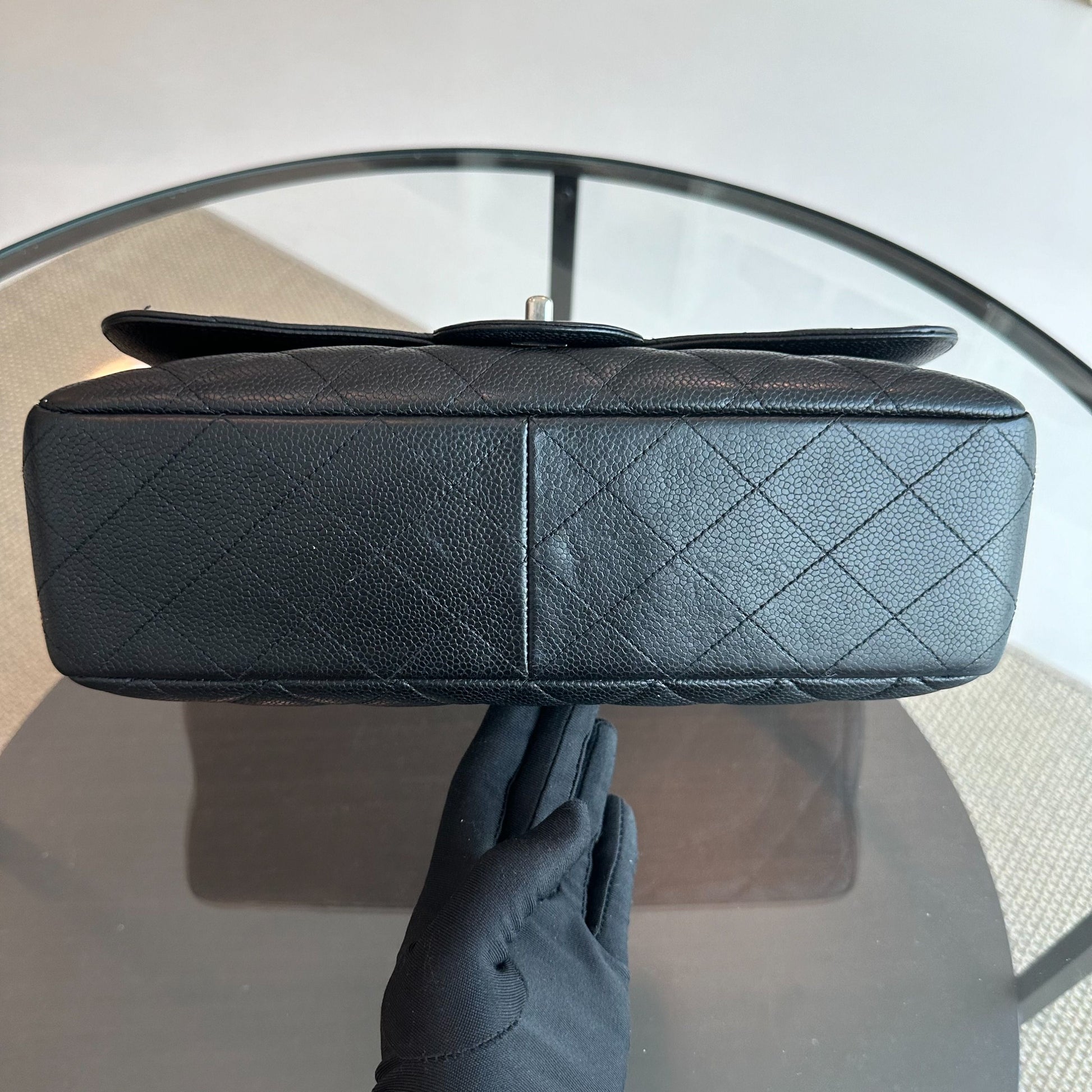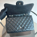 Caviar Jumbo Classic Flap Single Flap Quilted Calfskin Black SHW No 13