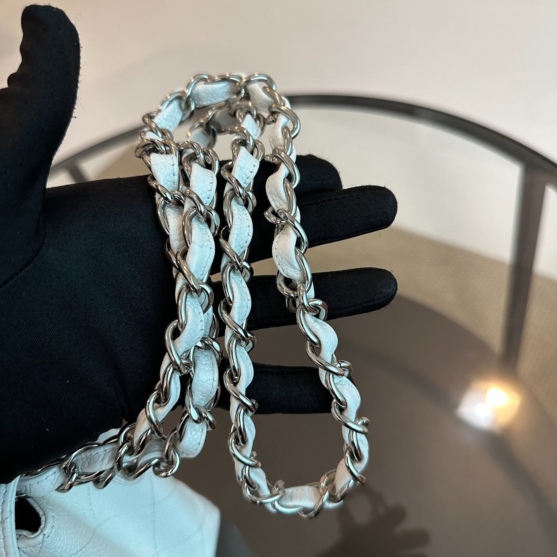 Caviar Jumbo Classic Flap Single Flap White SHW No 13