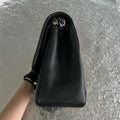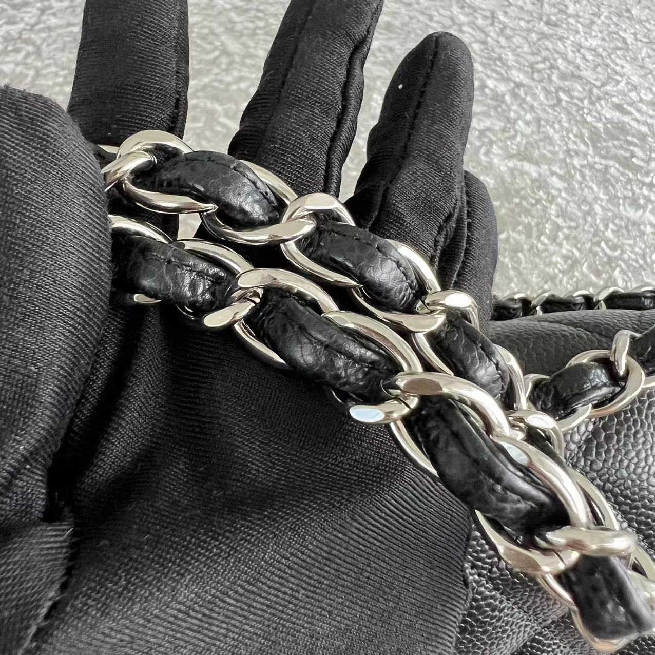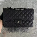 Caviar Jumbo Double Flap Classic Flap Quilted Calfskin Black Silver Hardware Series 19