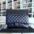 Caviar Jumbo Double Flap Classic Flap Quilted Calfskin Navy Blue SHW No 18