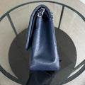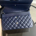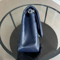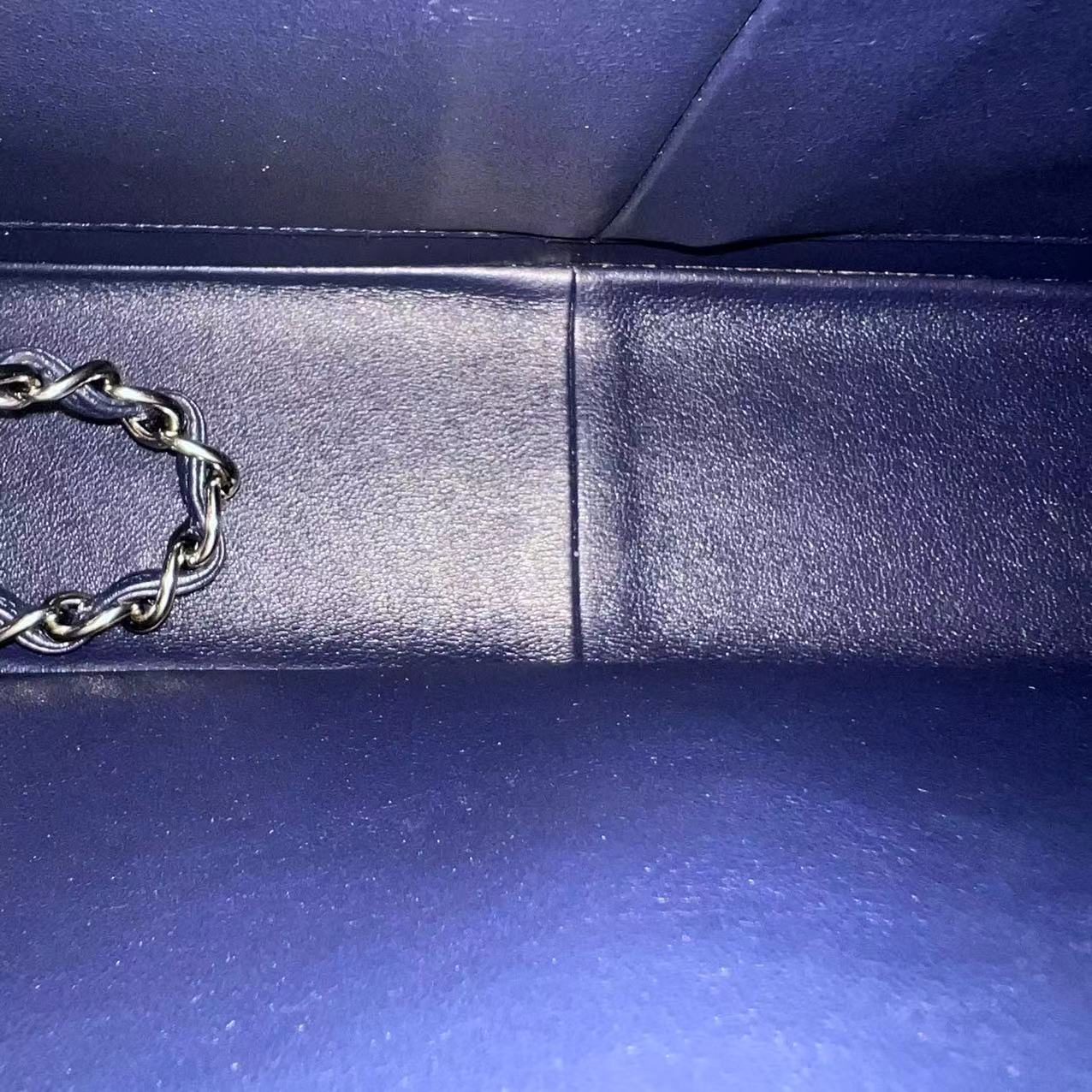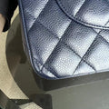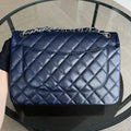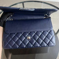 Caviar Jumbo Double Flap Classic Flap Quilted Grained Calfskin Dark Blue Silver Hardware Series 19