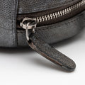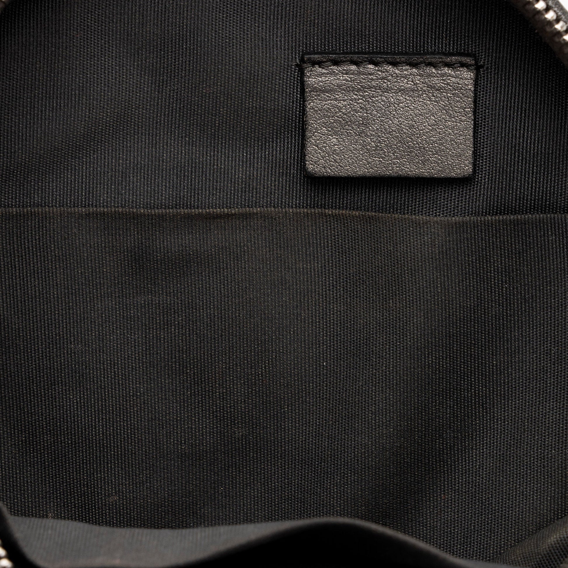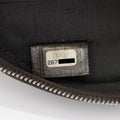 Condition Notes: Discoloration and scuffs throughout exterior. Creasing throughout exterior causing loss of structure. Visible wear to zipper pull. Heavy darkening and wear throughout leather woven into shoulder strap. Visible surface scratches to hardware. Marks and darkening throughout interior.