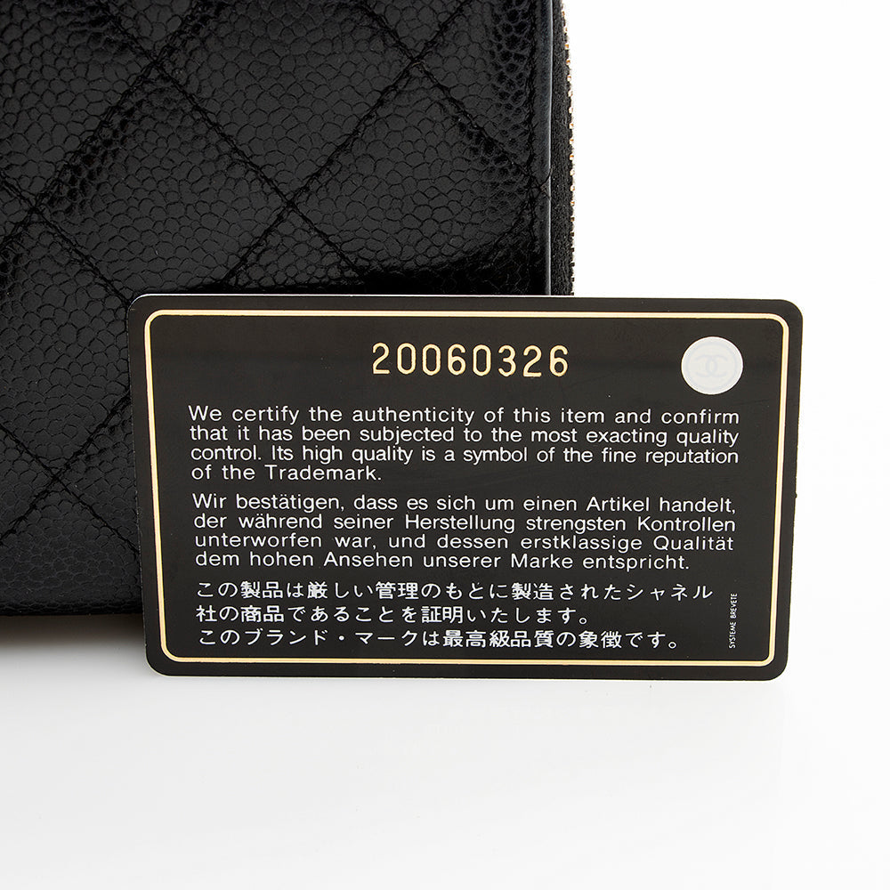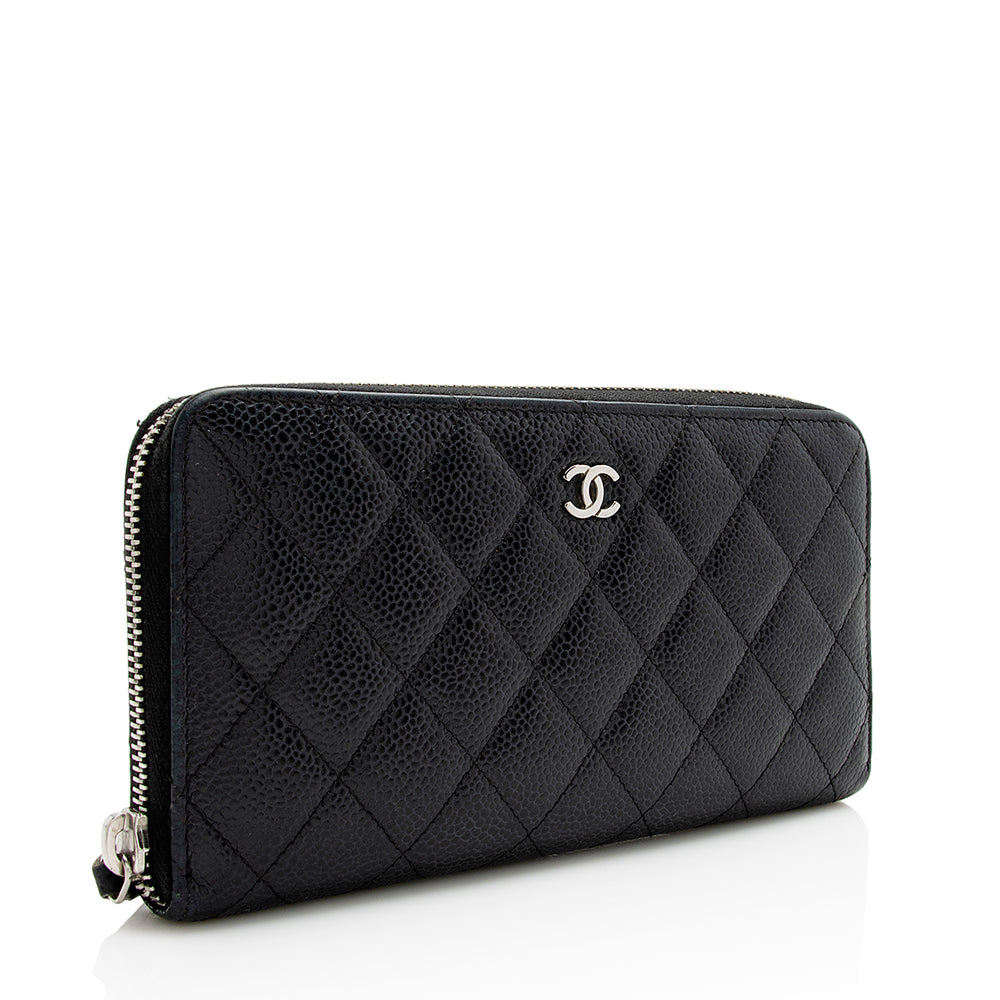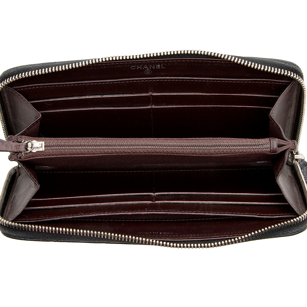 Chanel Caviar Leather CC Zip Around Wallet (SHF-21319)