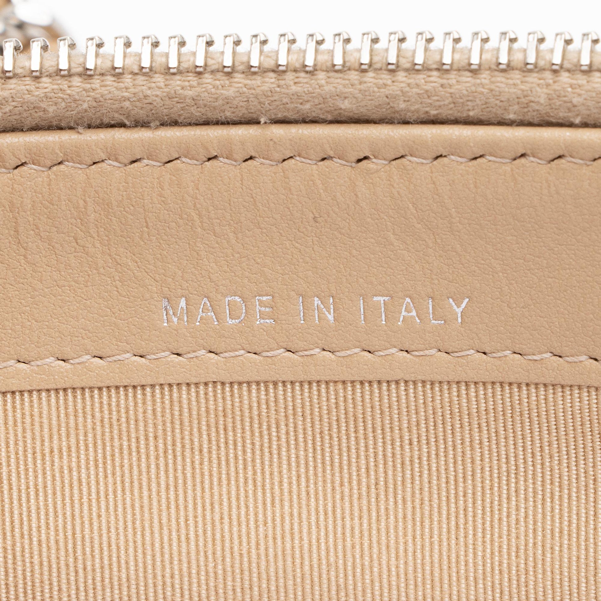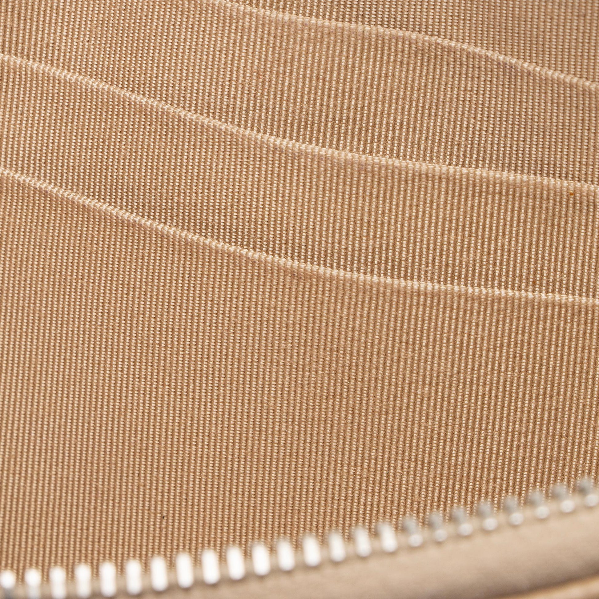 Condition Notes: Scuffs and loss of texture to exterior bottom corners. Marks and discoloration throughout exterior. Heavy darkening throughout exterior back. Marks, darkening, and minor pilling throughout zipper tape. Surface scratches to hardware. Marks and wear throughout interior.