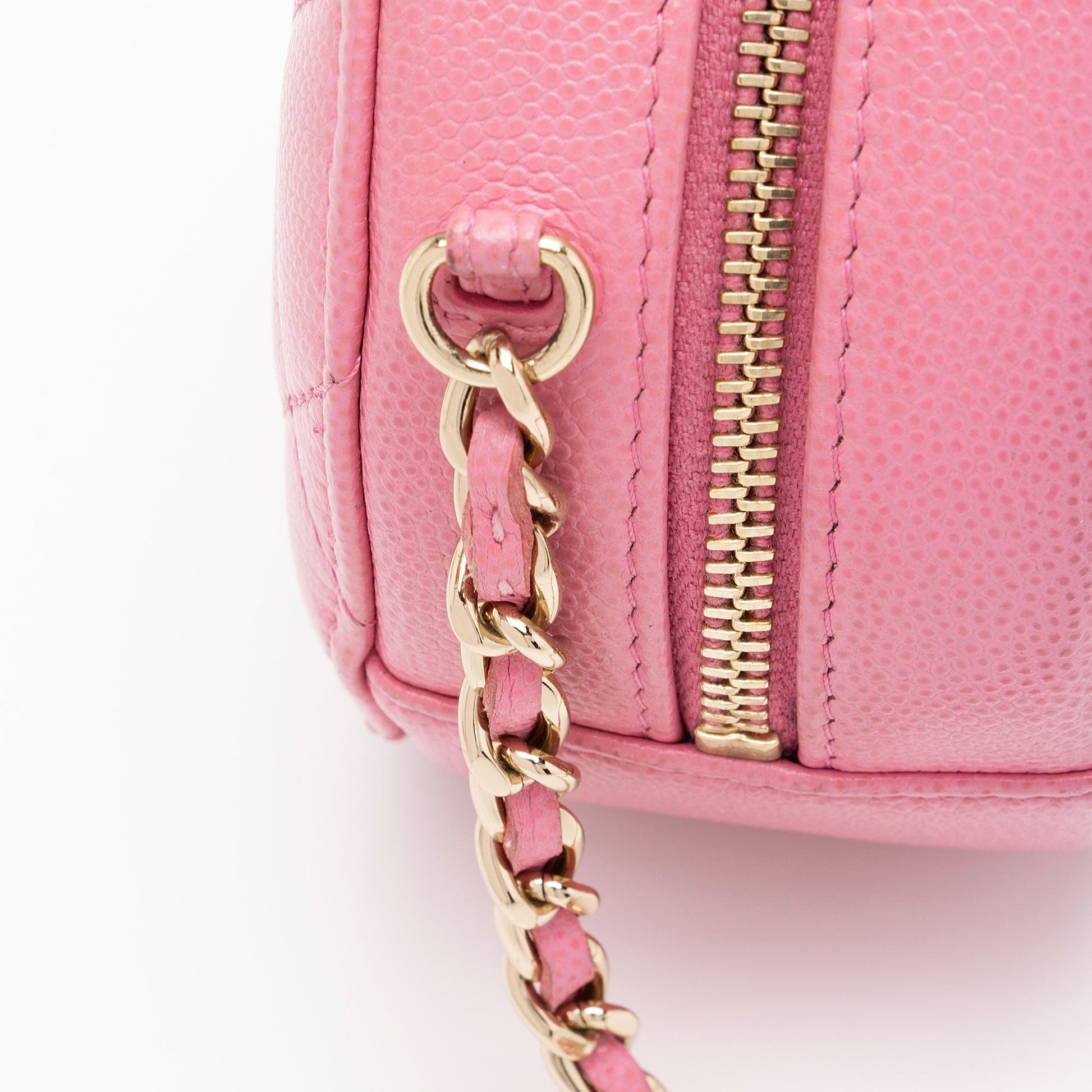 Chanel Caviar Leather Crystal CC Round Clutch with Chain (SHF-FU2AgY)