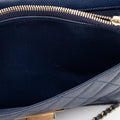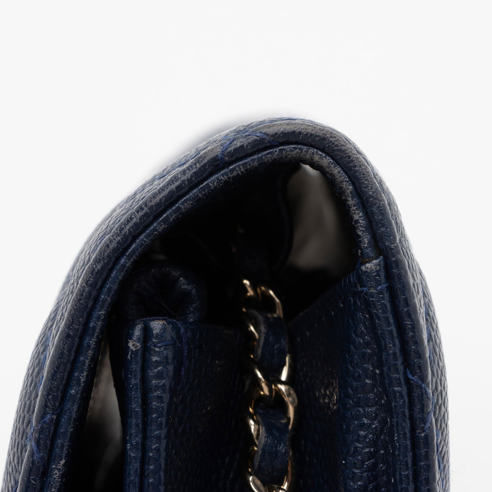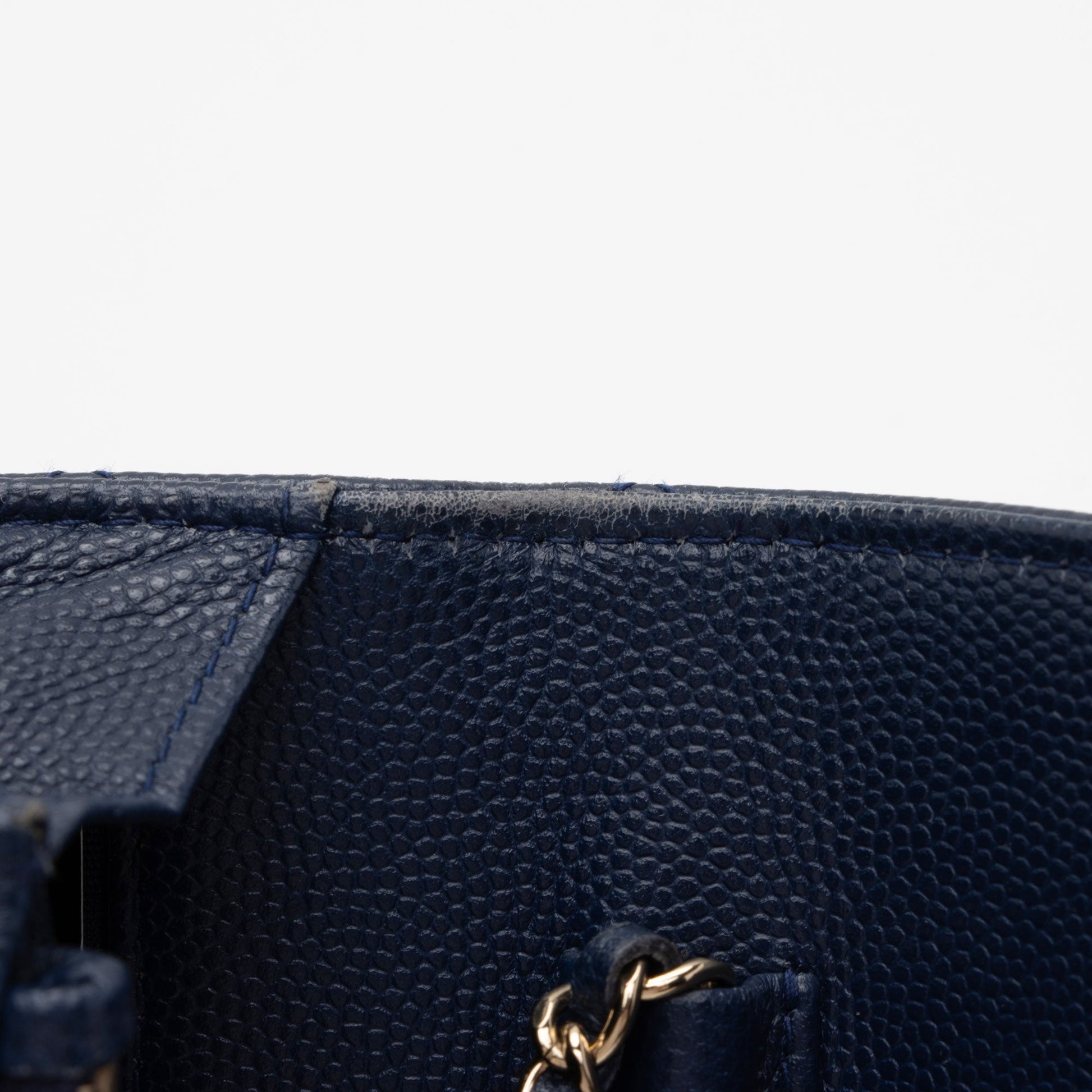 Condition Notes: Visible loss of structure to exterior sides. Light scuffs throughout exterior. Light scuffs and wear to exterior corners. Visible scuffs to exterior top corners. Scuffs throughout leather woven in shoulder strap. Surface scratches to hardware. Light wear throughout interior. Please note: Read product details carefully. This is a dark blue bag.