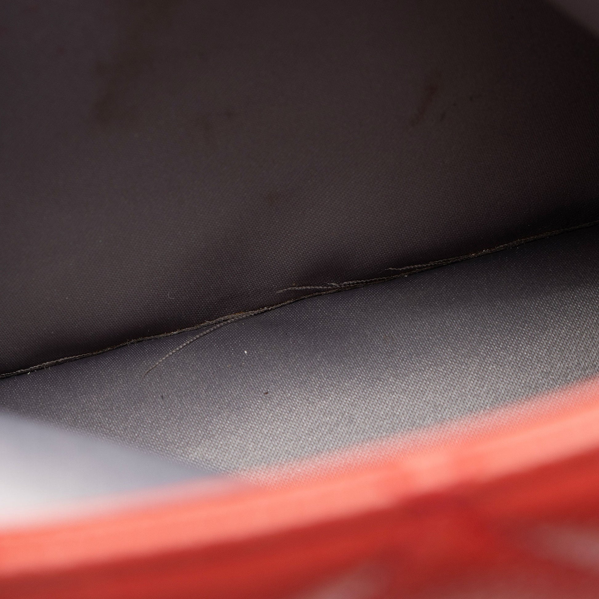 Condition Notes: Creasing to exterior near bottom causing loss of structure. Moderate scuffs and wear to exterior bottom corners. Creasing and marks throughout leather on handles. Surface scratches to hardware. Light marks throughout interior. Discoloration to interior hologram.