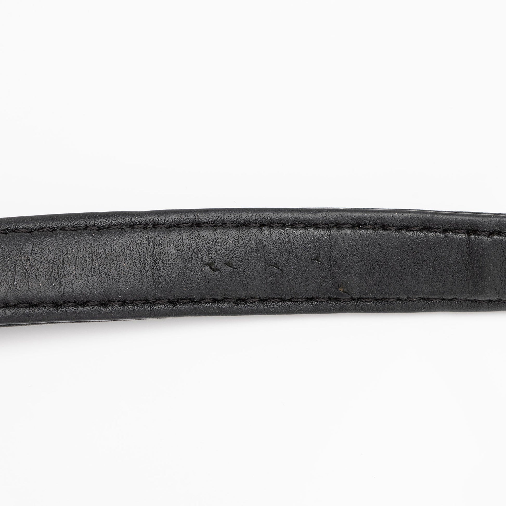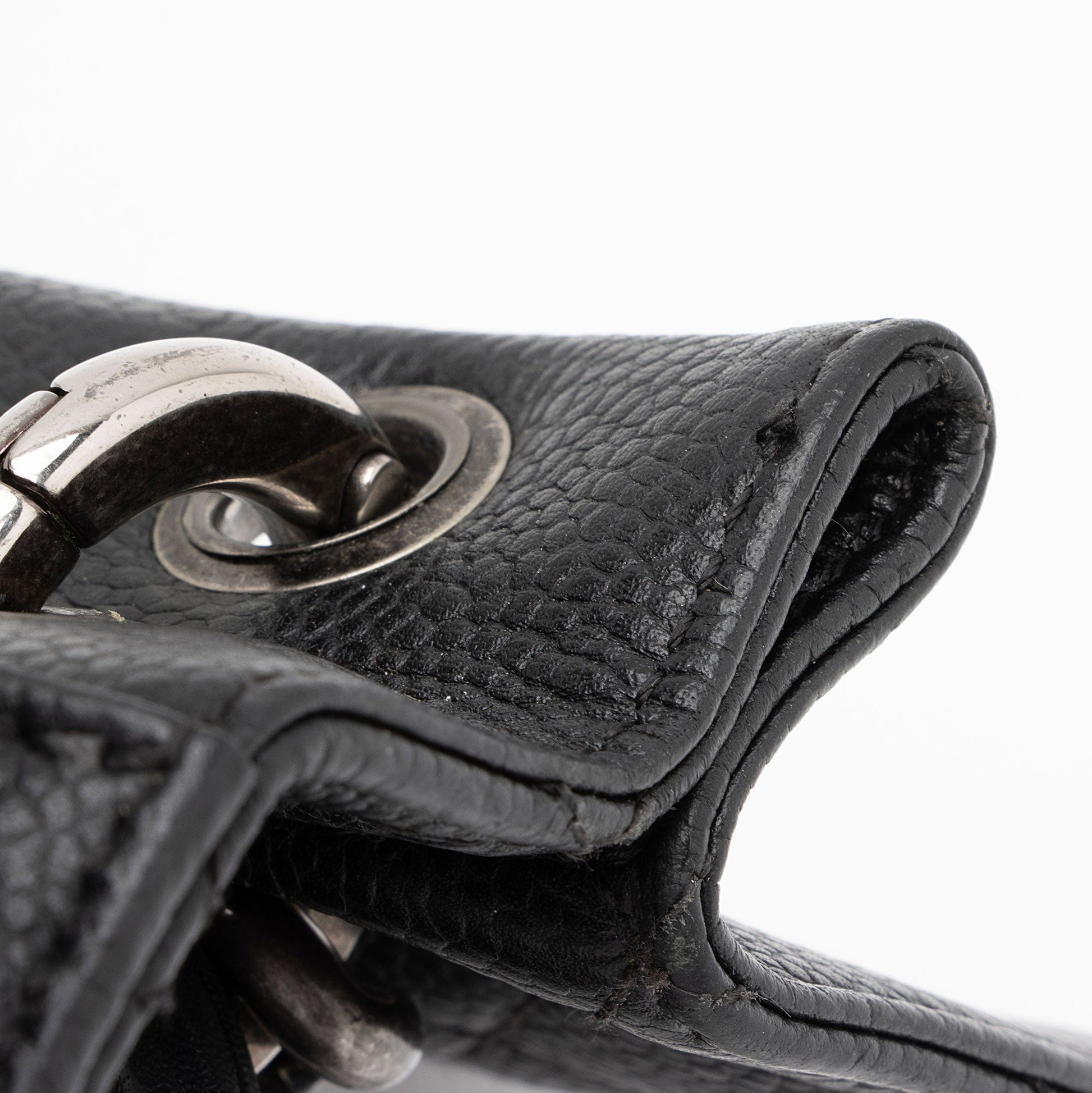 Condition Notes: Visible creasing and light bubbling throughout shoulder strap. Scuffs and wear throughout exterior edges and corners. Surface scratches to hardware. Minor marks and fading throughout interior. Light loss of texture to interior flap.