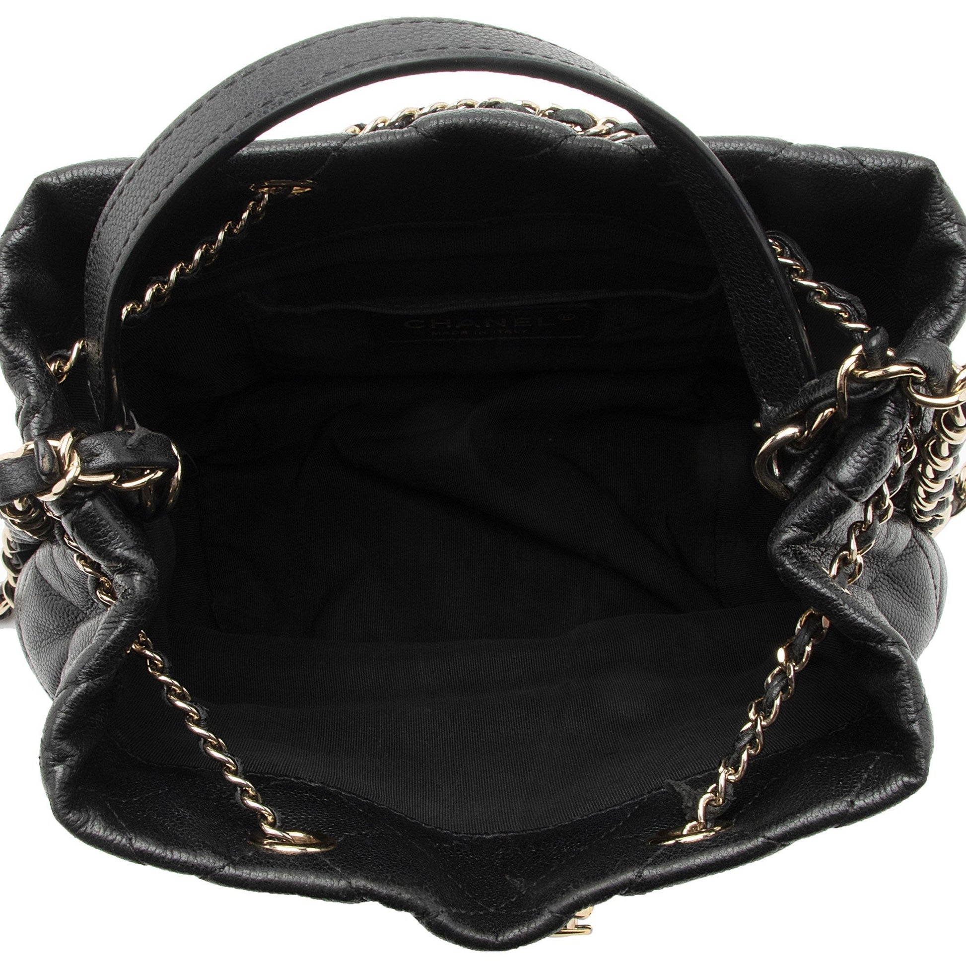 Chanel Caviar Leather Rolled Up Drawstring Bucket Bag (SHF-9VaoLU)