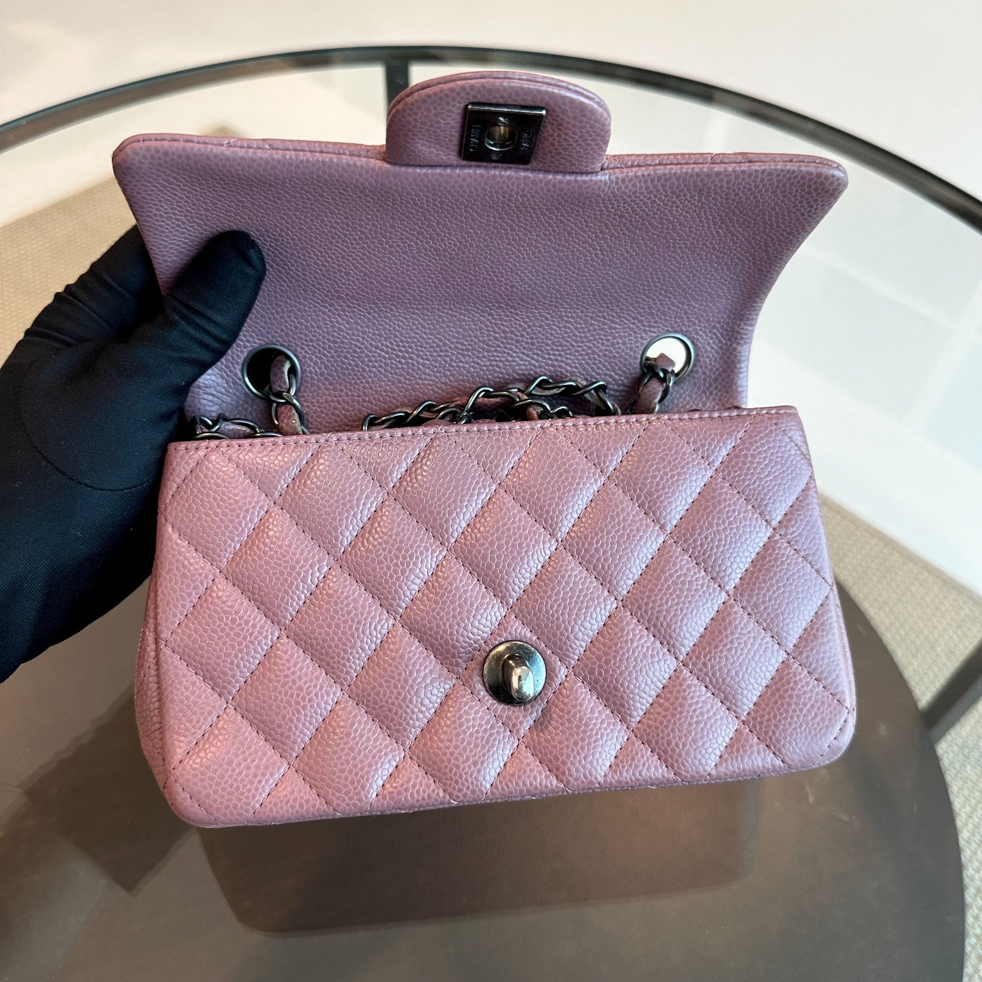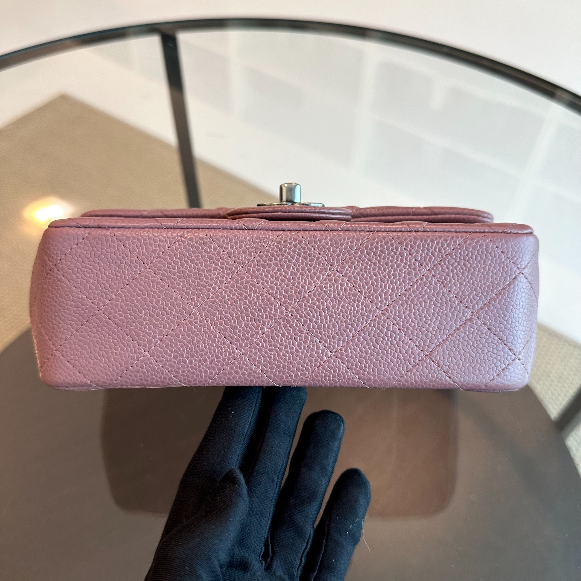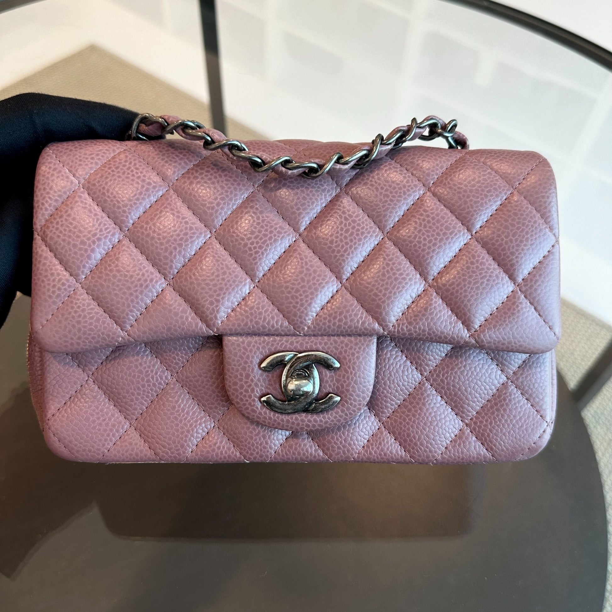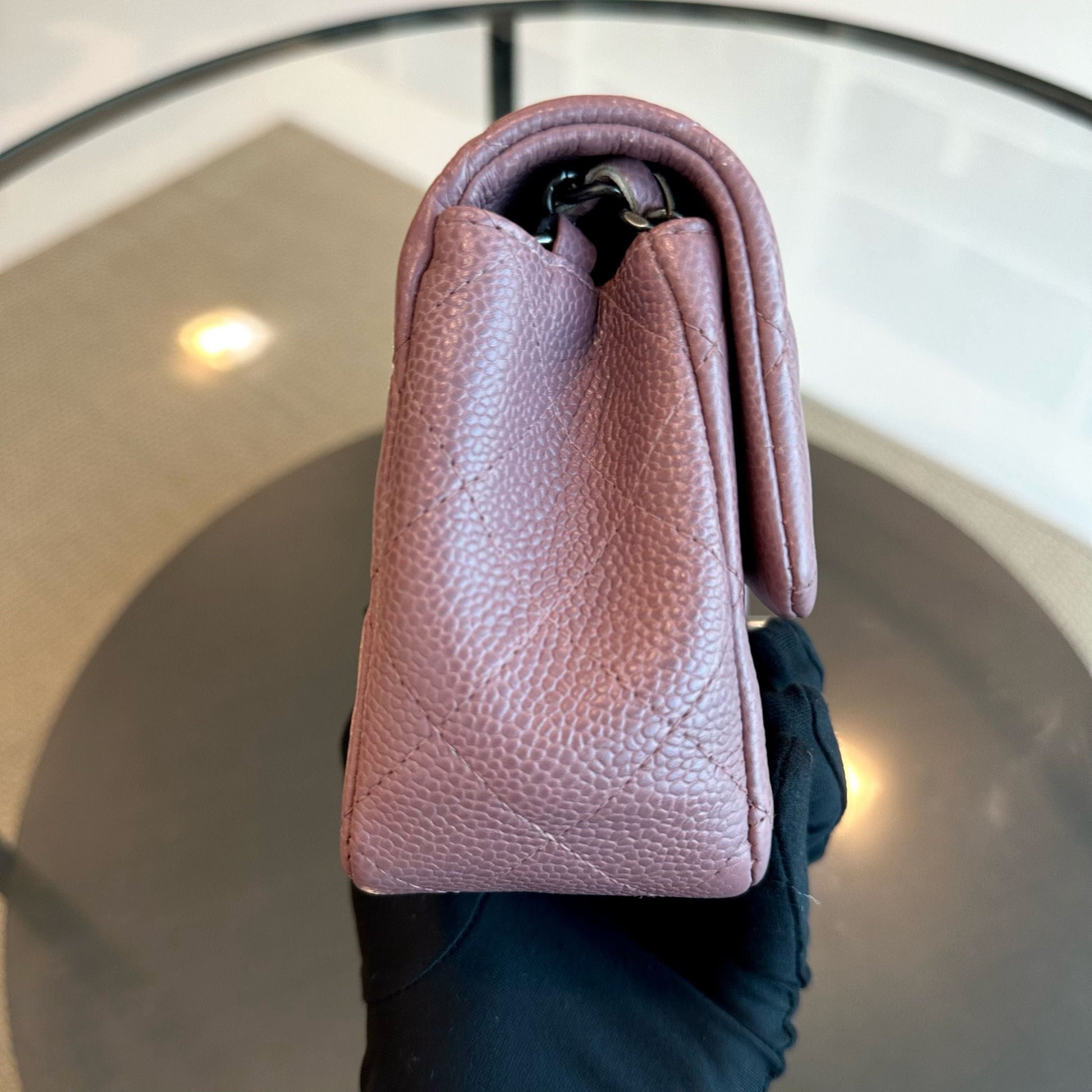 Caviar Mini Rectangular 20CM Classic Flap Quilted Calfskin Purple RSHW No 21