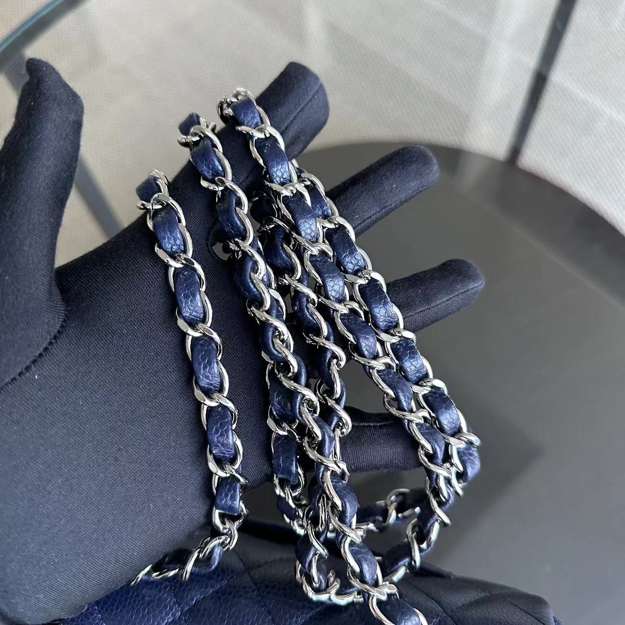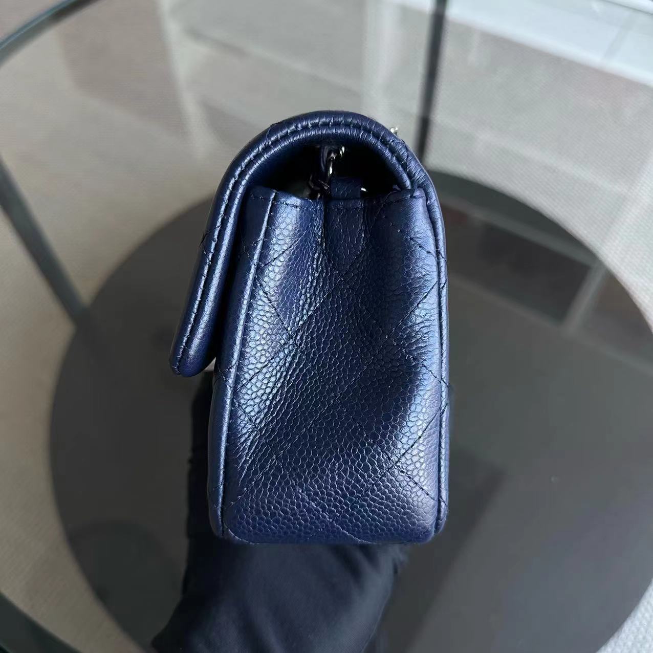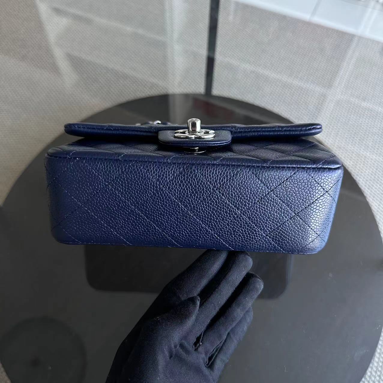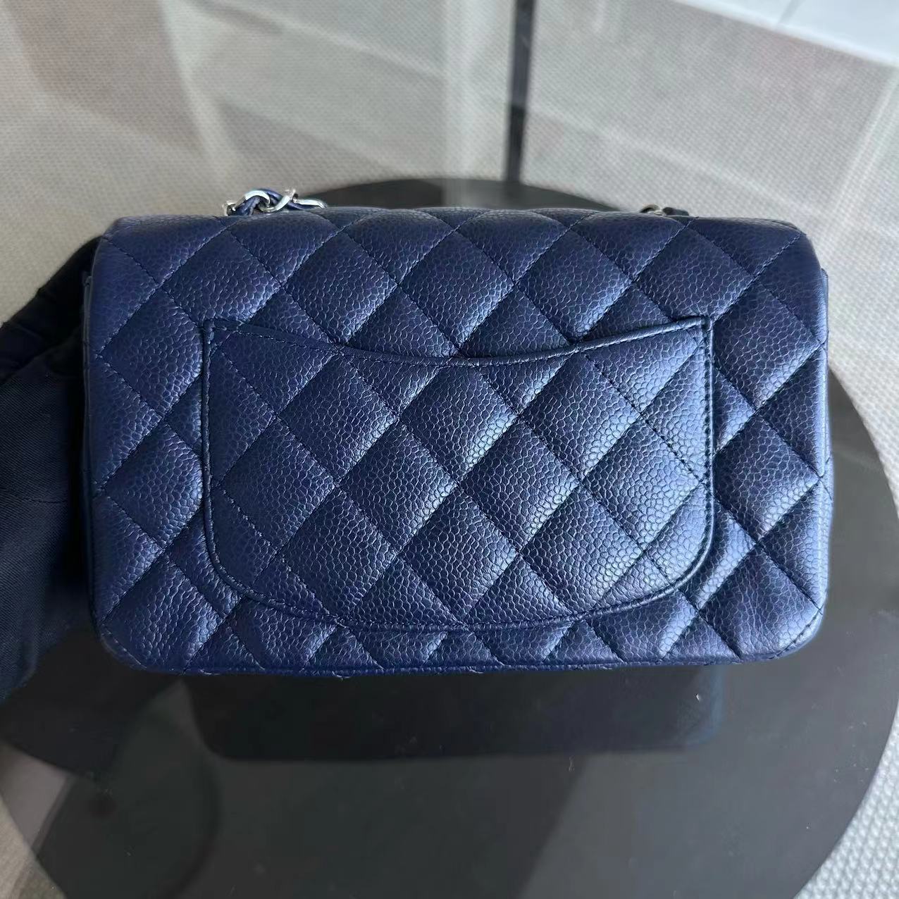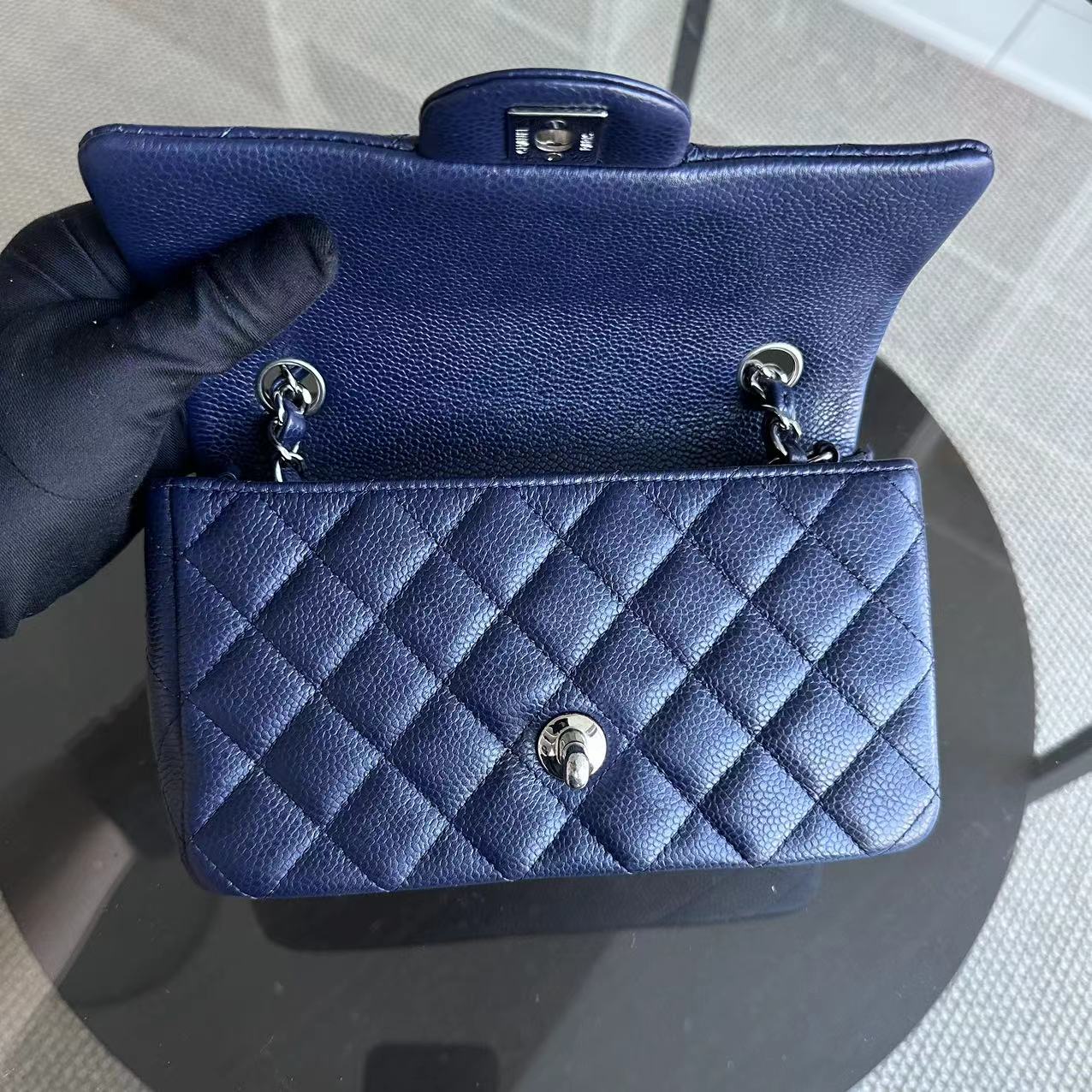 Caviar Mini Rectangular Classic Flap 20CM Quilted Calfskin Dark Blue SHW No 18
