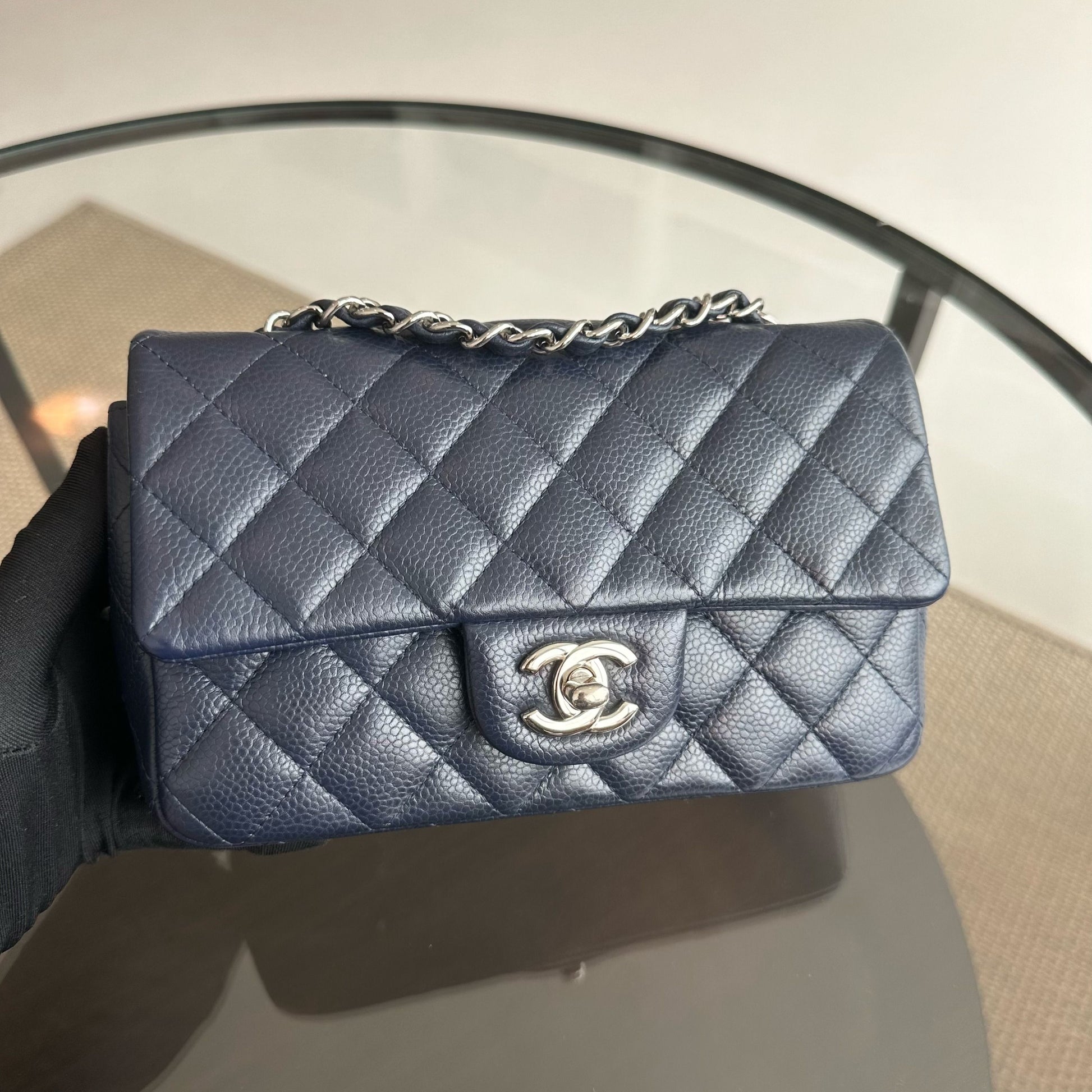 Caviar Mini Rectangular Classic Flap Mini Dark Blue No 18