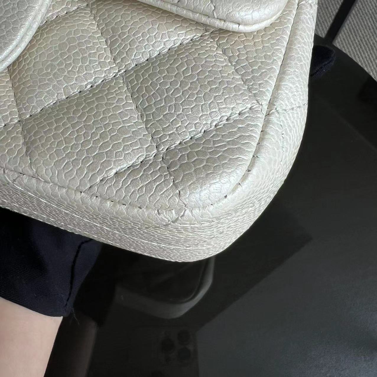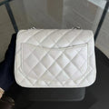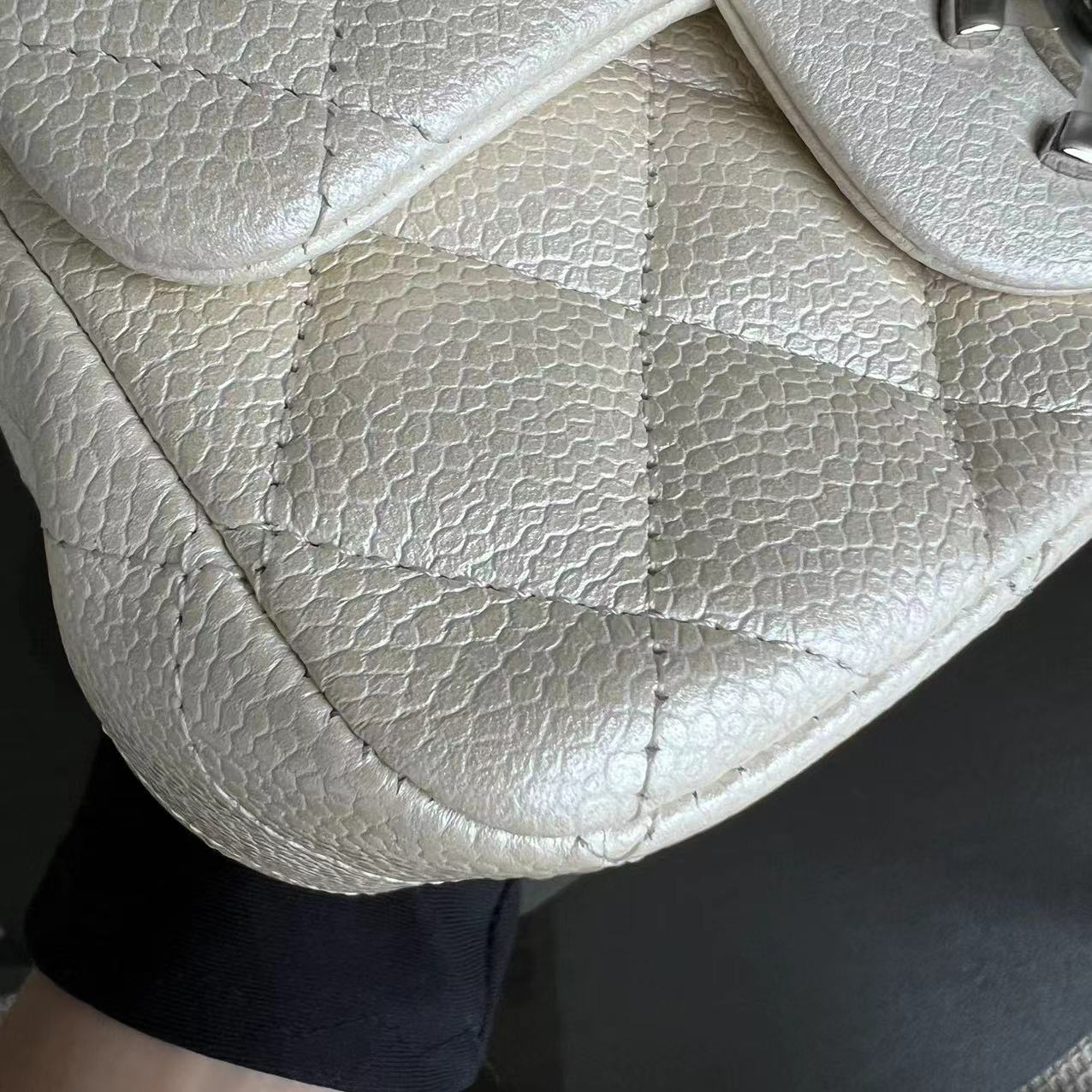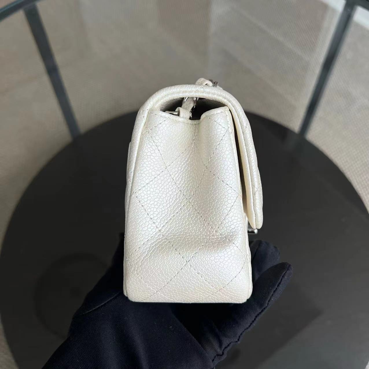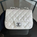 Caviar Mini Square Classic Flap 17CM Quilted Calfskin Pearl White SHW No 20