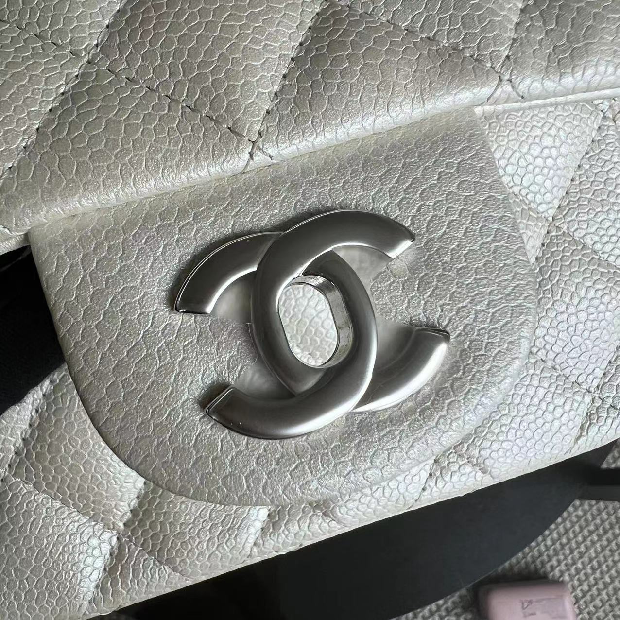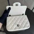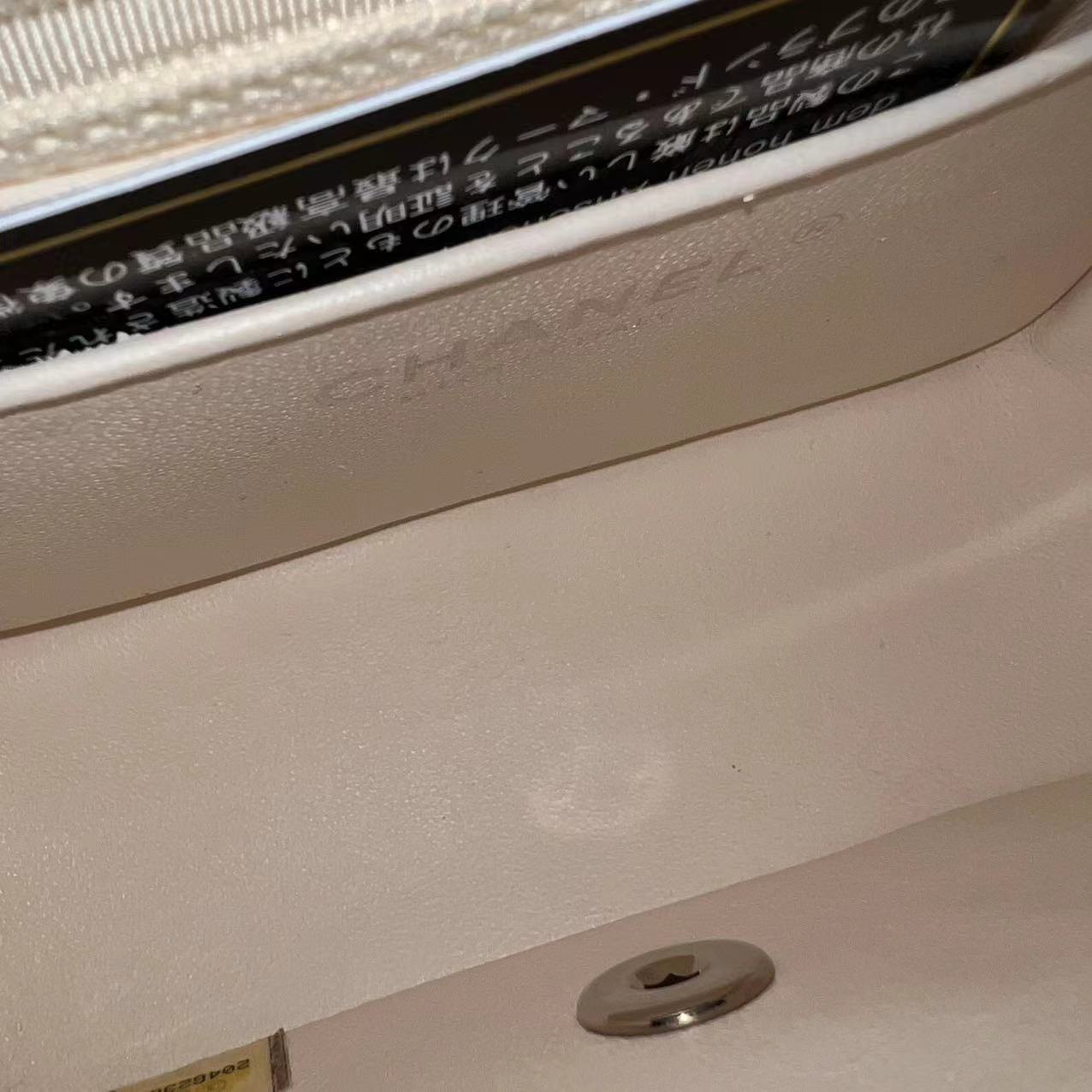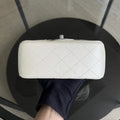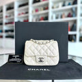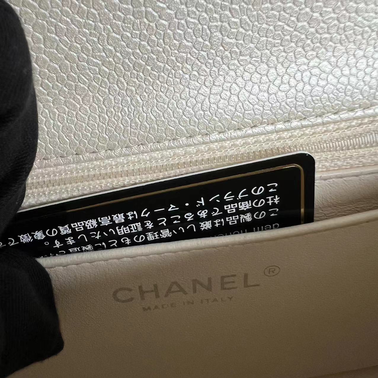 Caviar Mini Square Classic Flap 17CM Quilted Calfskin Pearl White SHW No 20