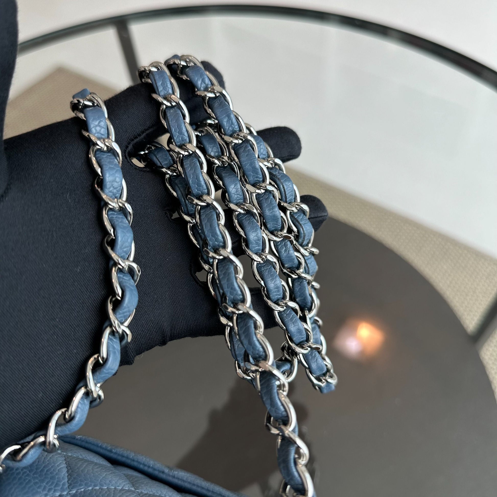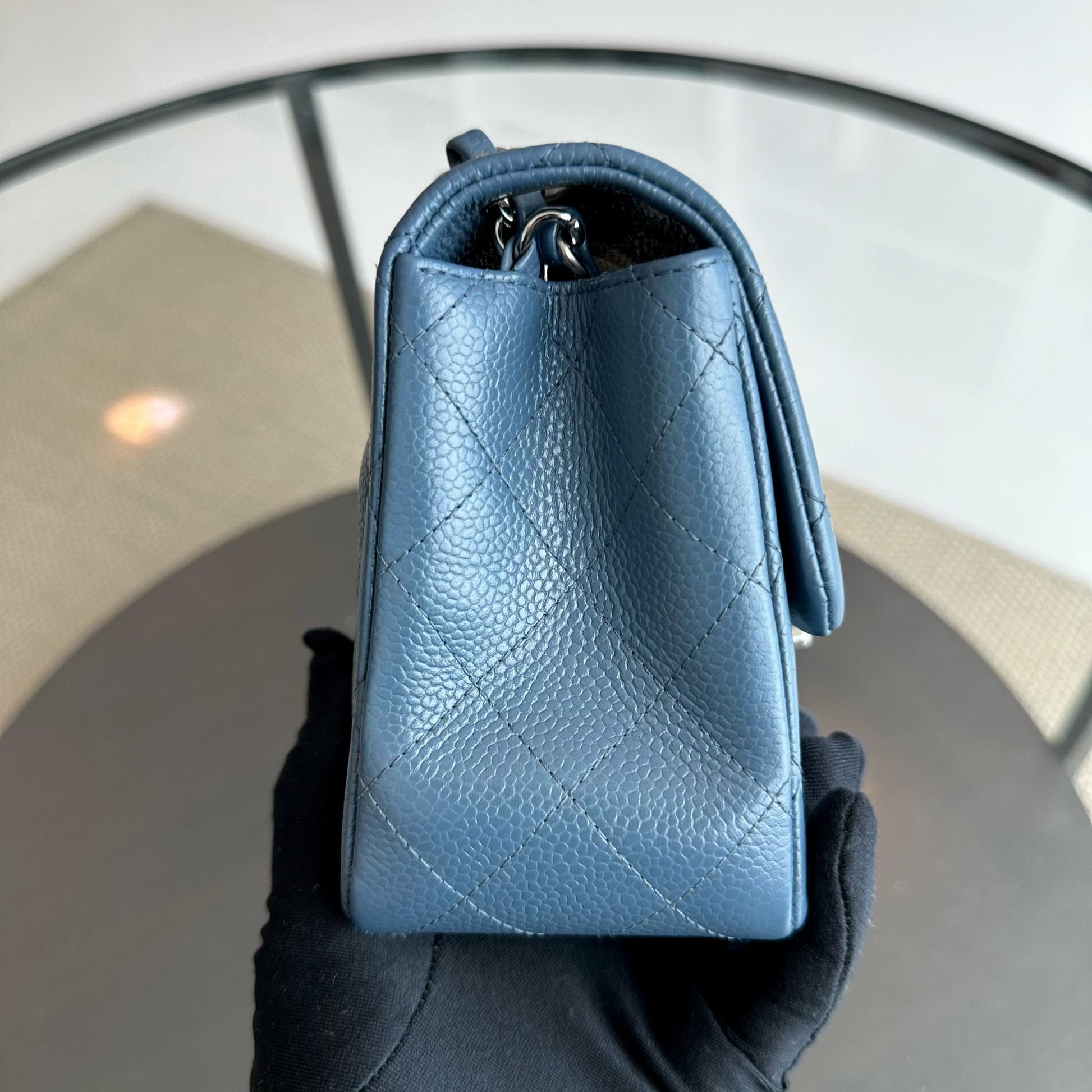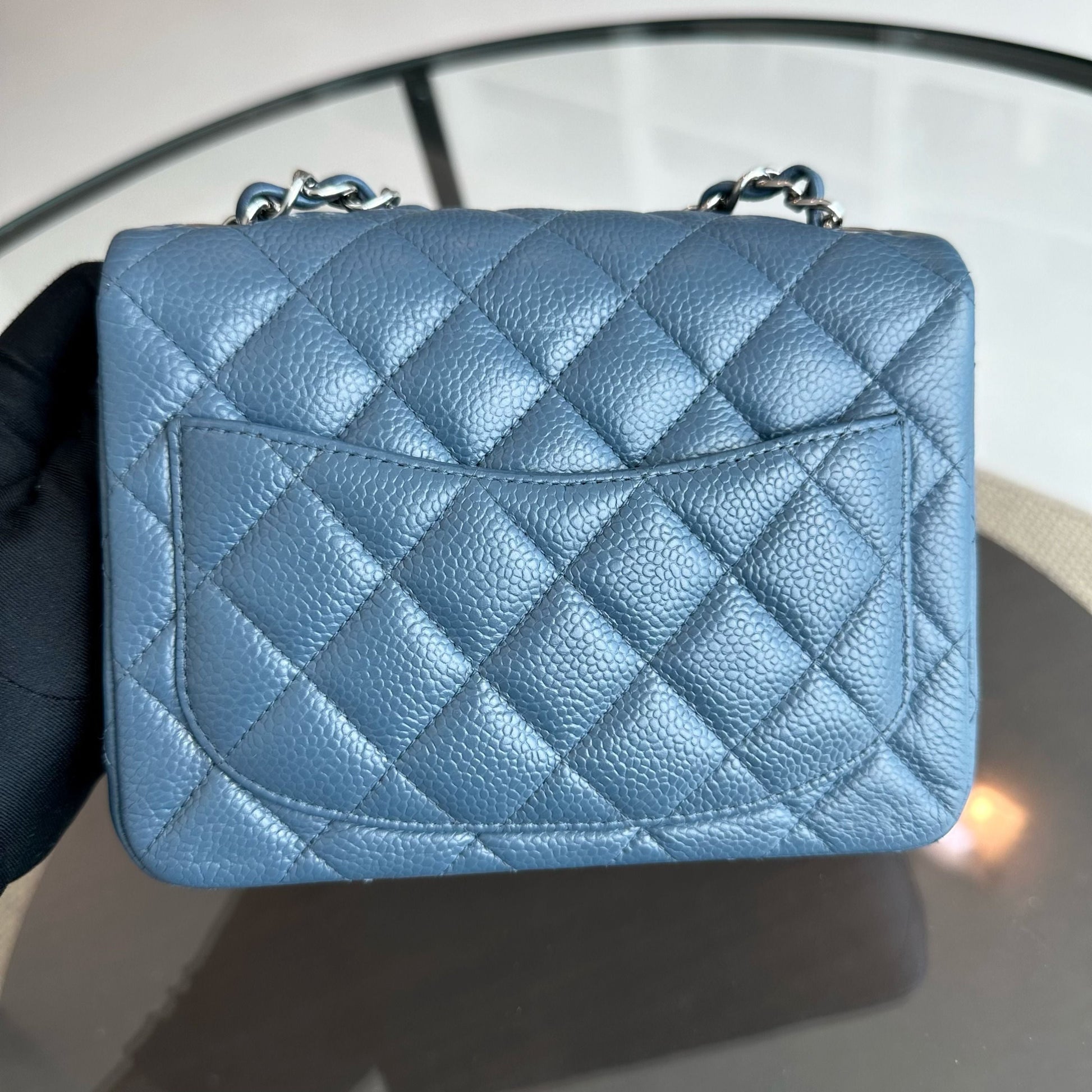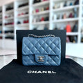 Caviar Mini Square Classic Flap Quilted Calfskin Blue SHW No 19