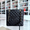 Caviar PST Petite Shopping Tote Quilted Grained Calfskin Black Golden Hardware Series 14