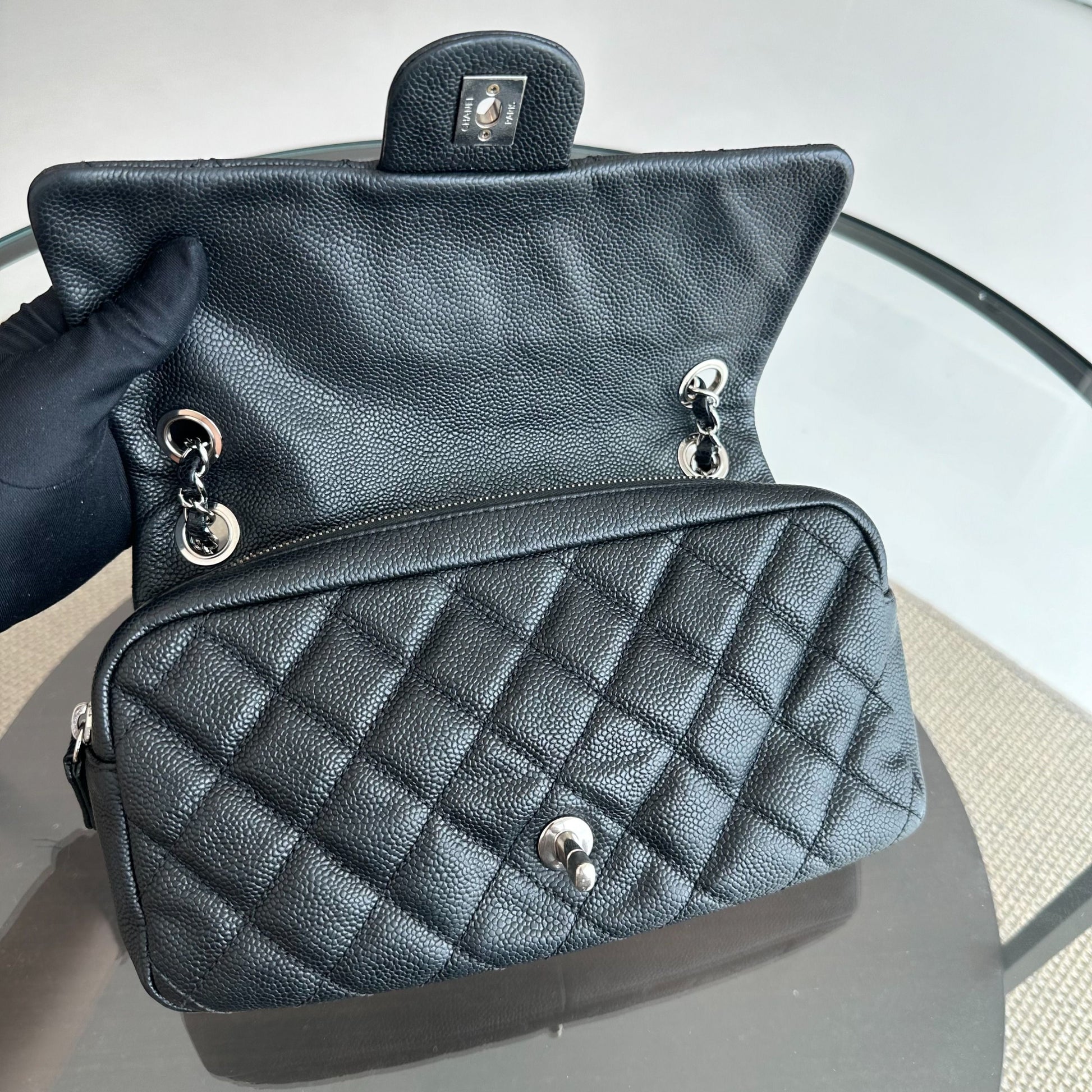 Chanel Seasonal Flap - Zip Around Caviar Quilted Black Silver Hardware Series 17