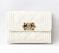 Chanel Caviar Skin Boy Chanel Mini Wallet Off White Gold