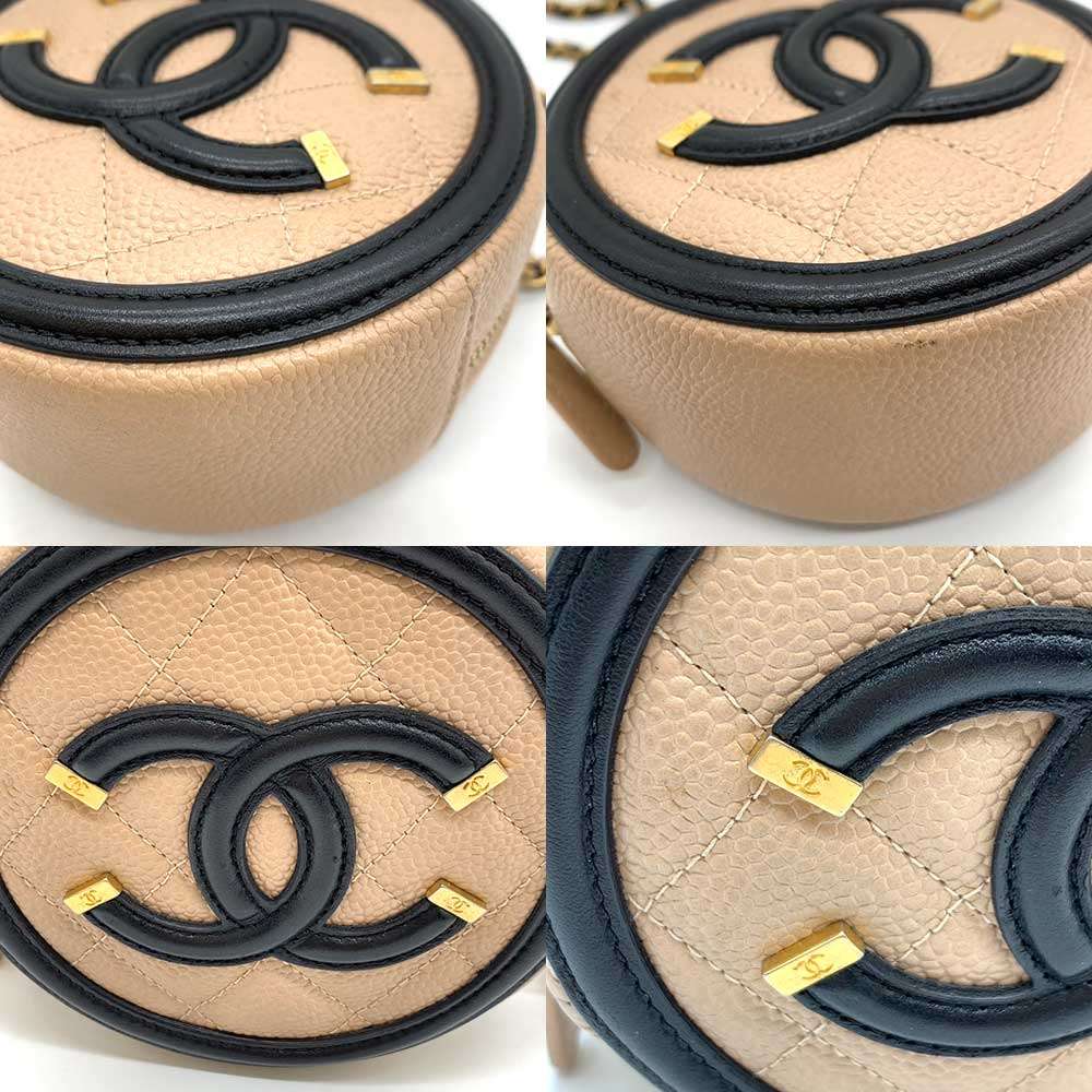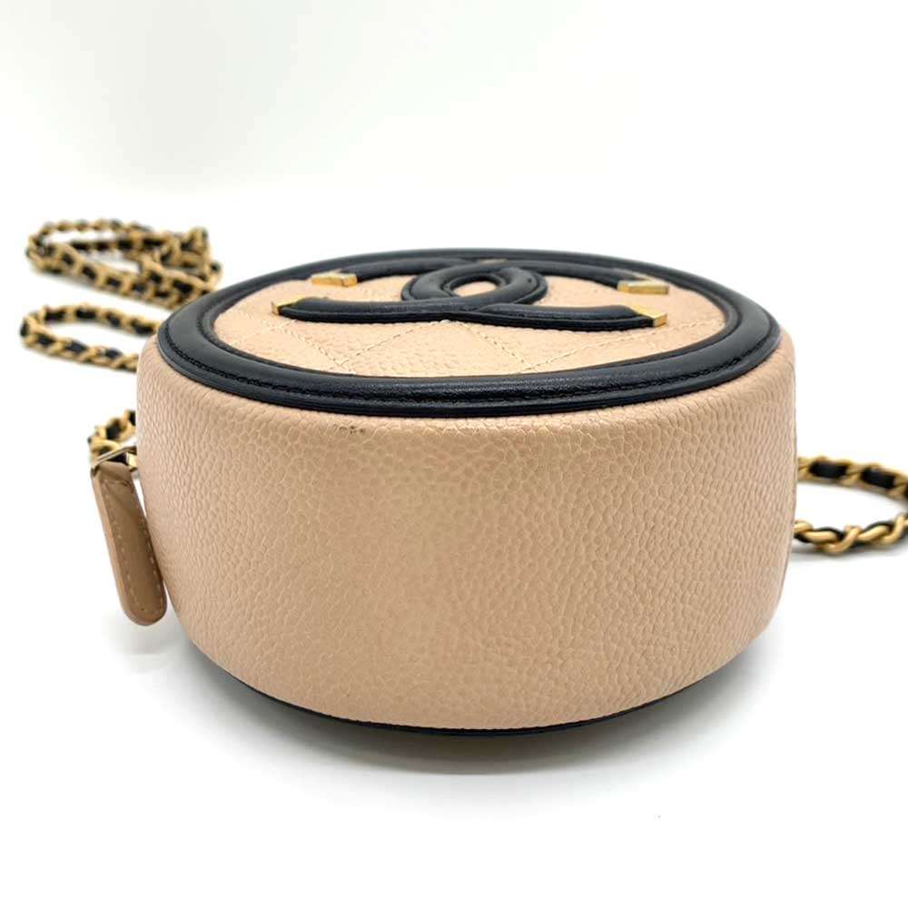 Item name : Chanel Caviar Skin CC Filigree Round Chain Crossbody Bag