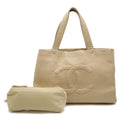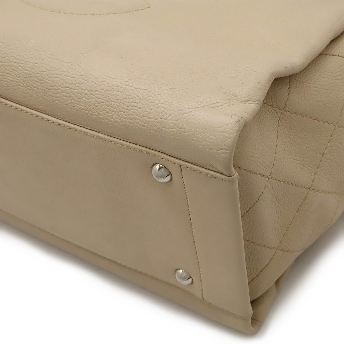 Chanel Caviar Skin Coco Mark 2way Tote Bag Light Beige Silver Hardware
