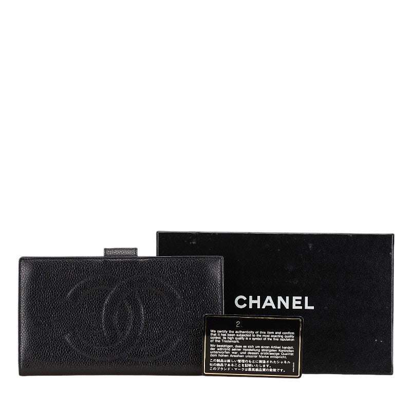 Chanel Caviar Skin Coco Mark Long Wallet
