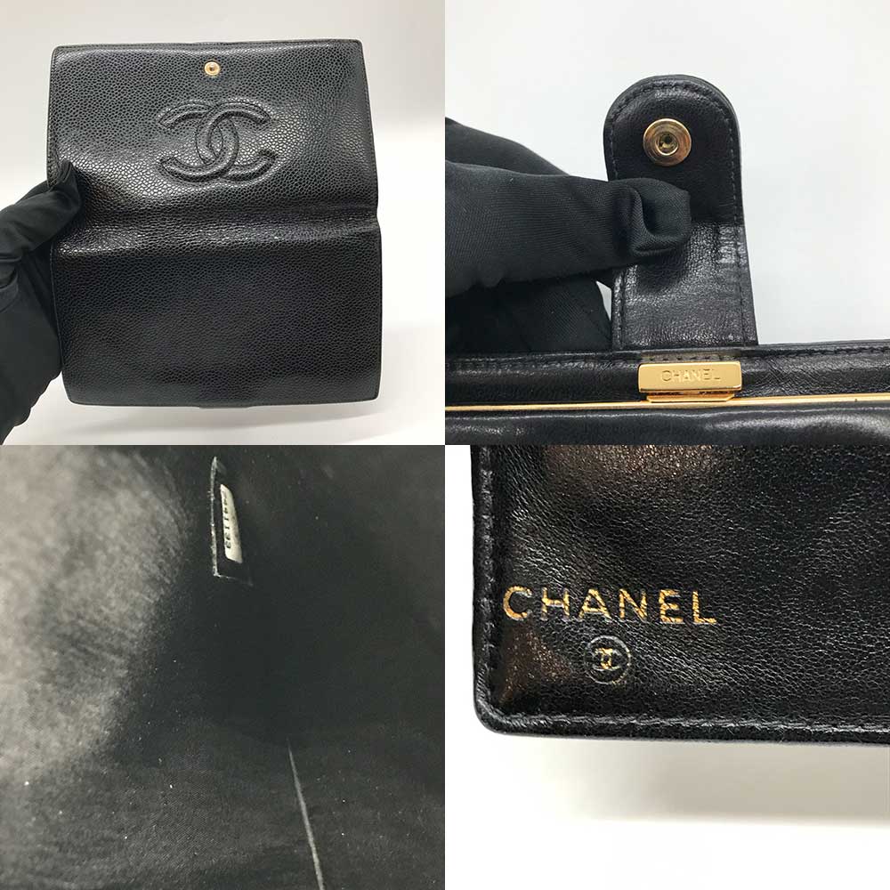 Item name : Chanel Caviar Skin Leather Bifold Long Wallet Black