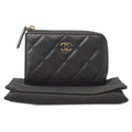 Chanel Caviar Skin Matelasse Coin Case Key Ring Mini Wallet AP0221