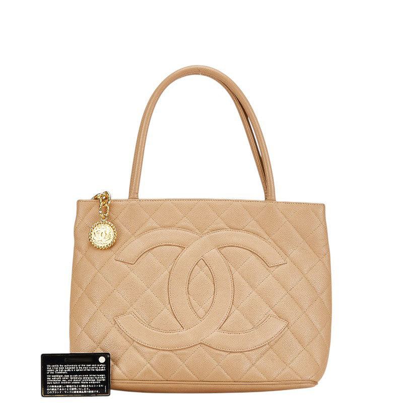 Chanel Caviar Skin Matelasse Tote Bag Beige