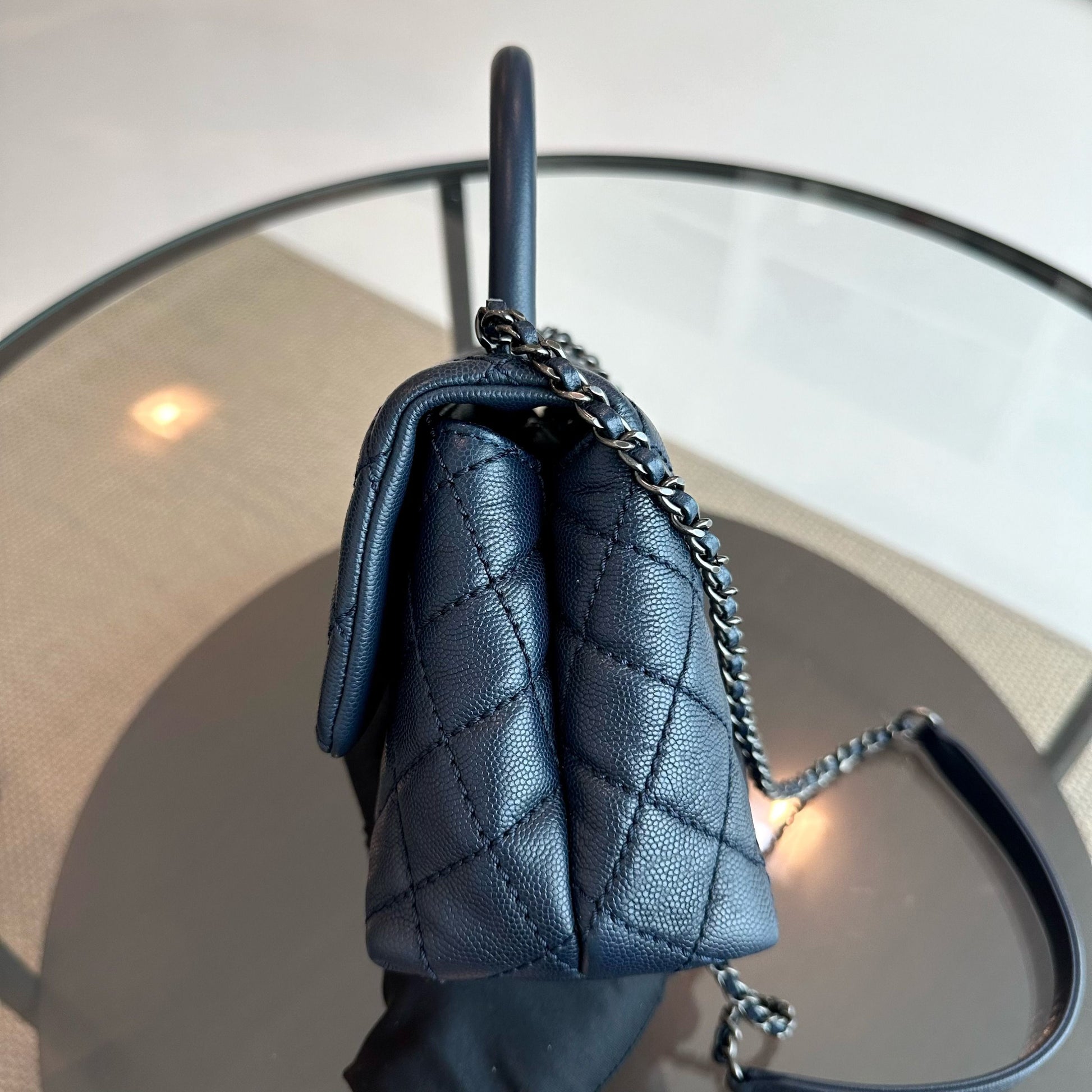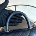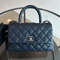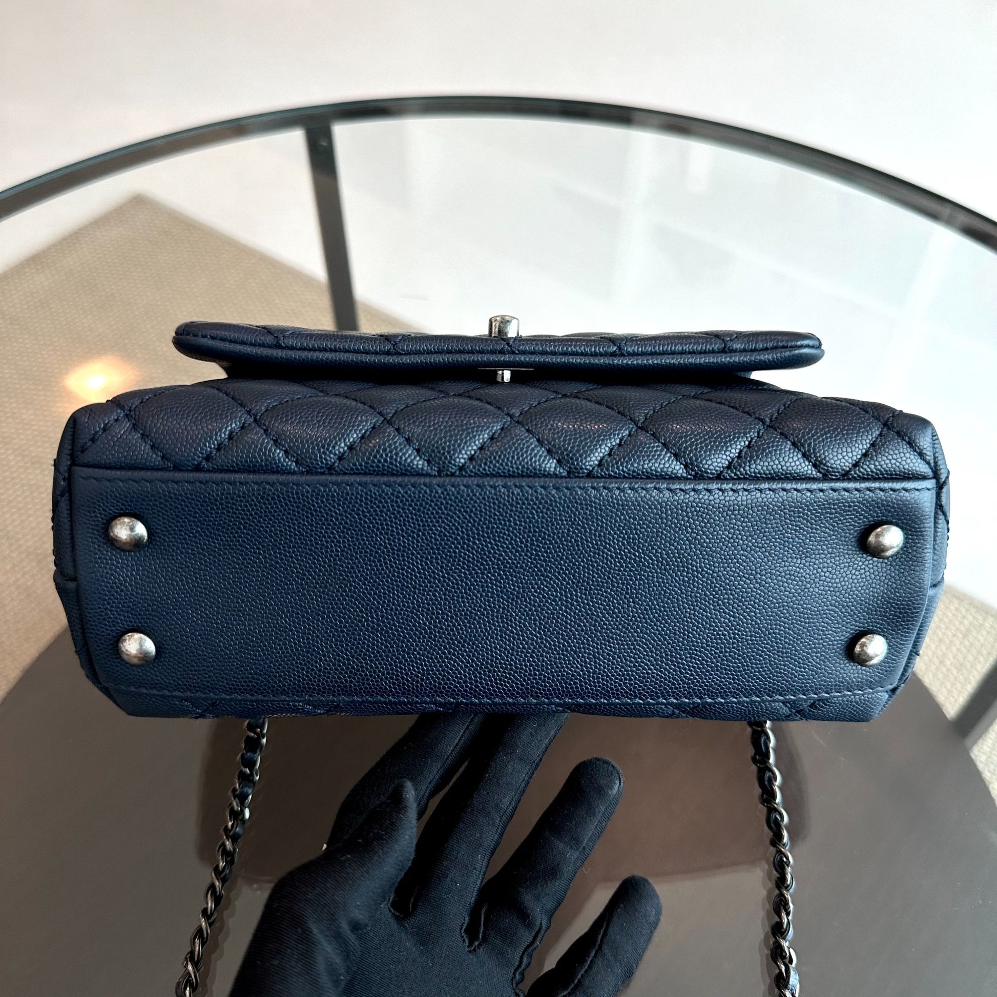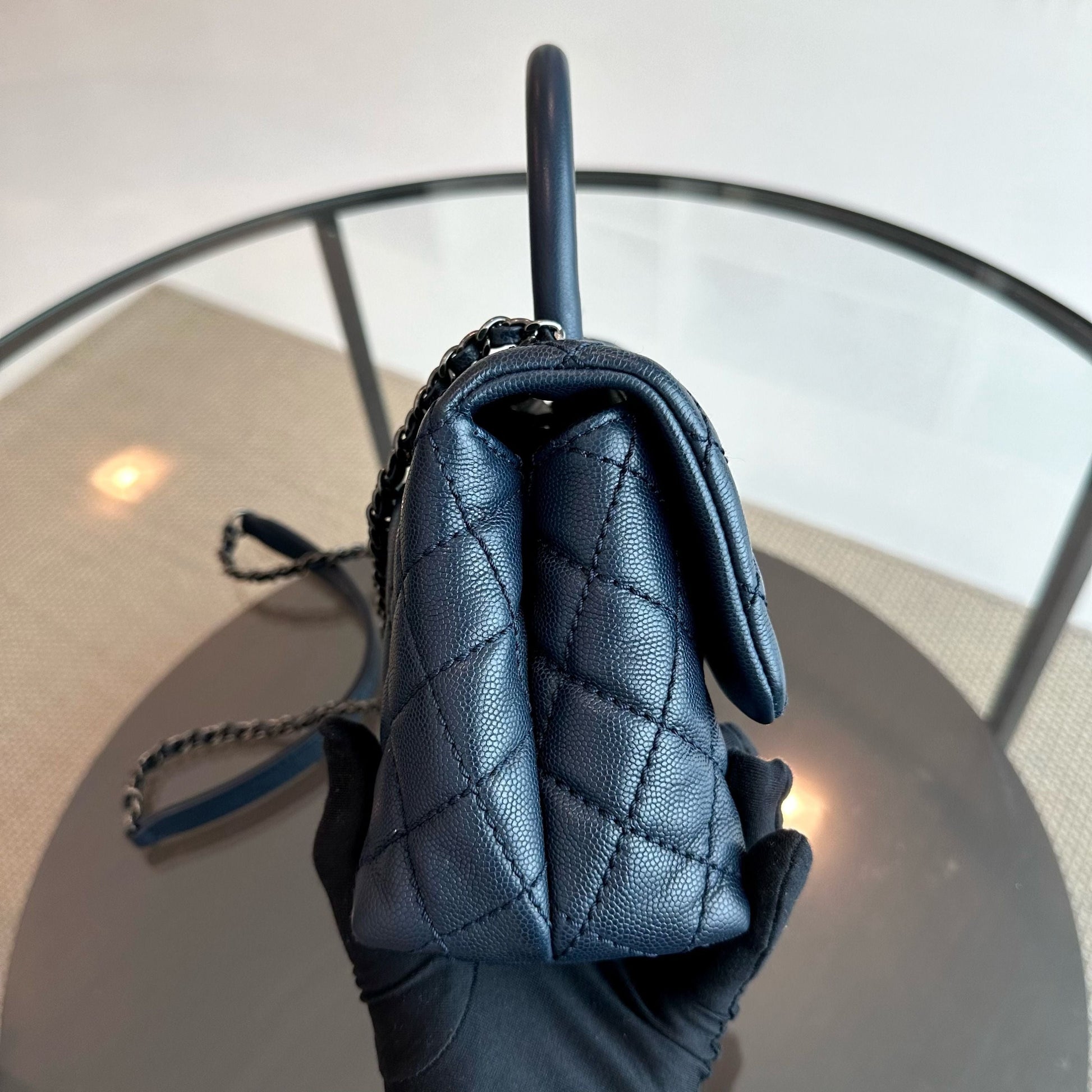 Caviar Small Coco Handle 24cm Quilted Calfskin Dark Navy Blue No 22