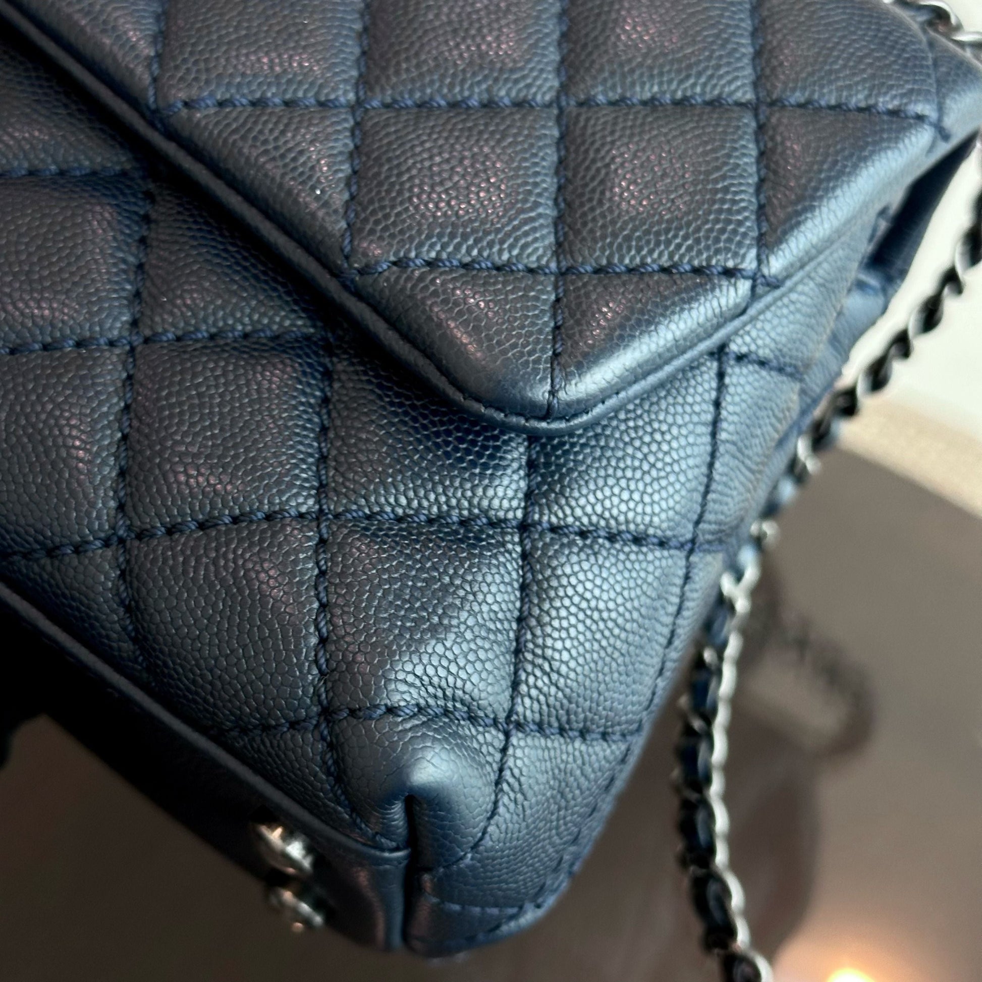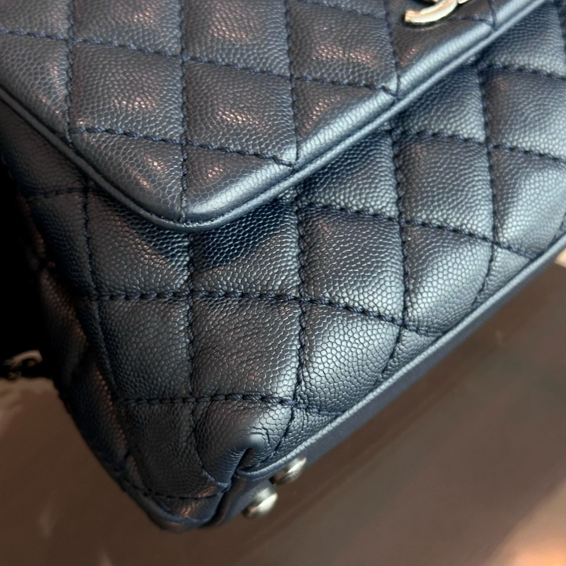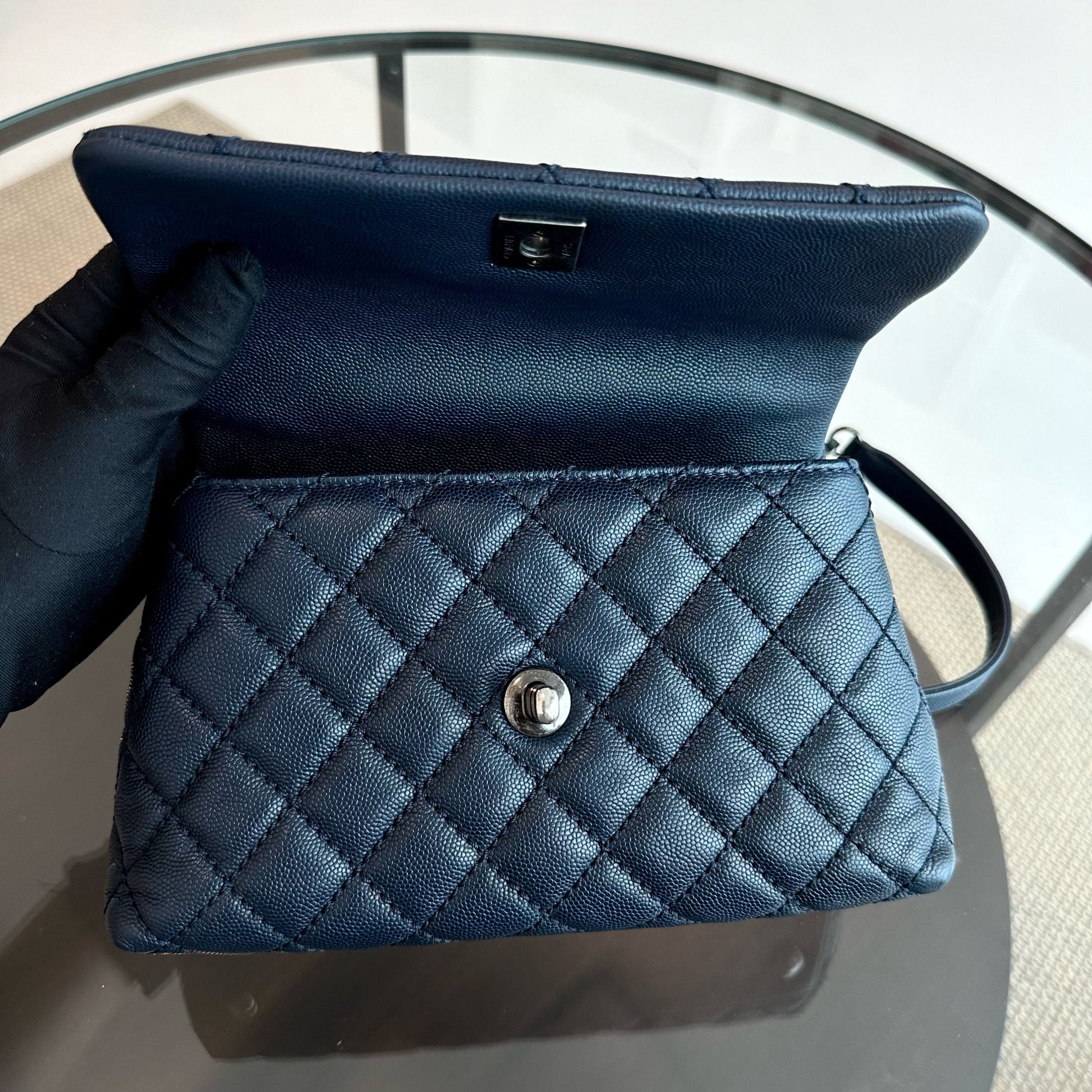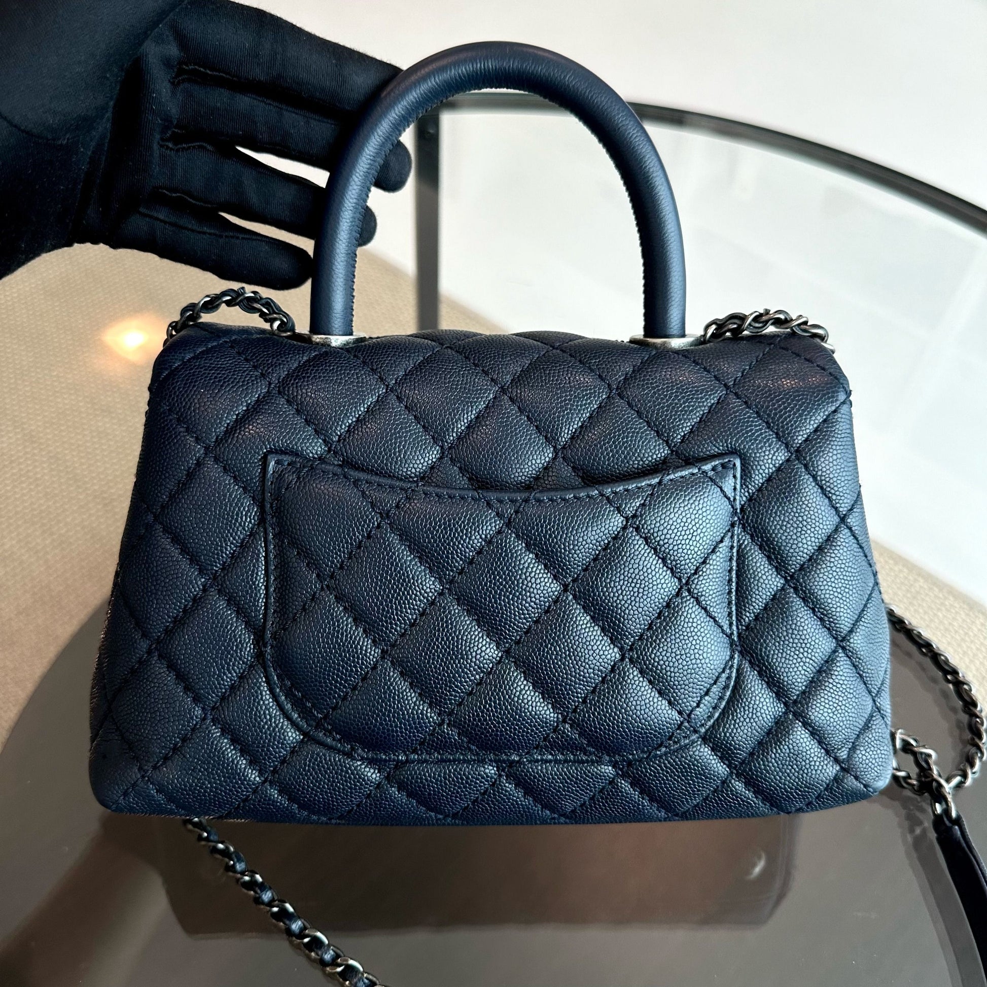 Caviar Small Coco Handle 24cm Quilted Calfskin Dark Navy Blue No 22