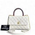 Caviar Small Coco Handle Quilted Calfskin Cream White Golden Hardware Series 24
