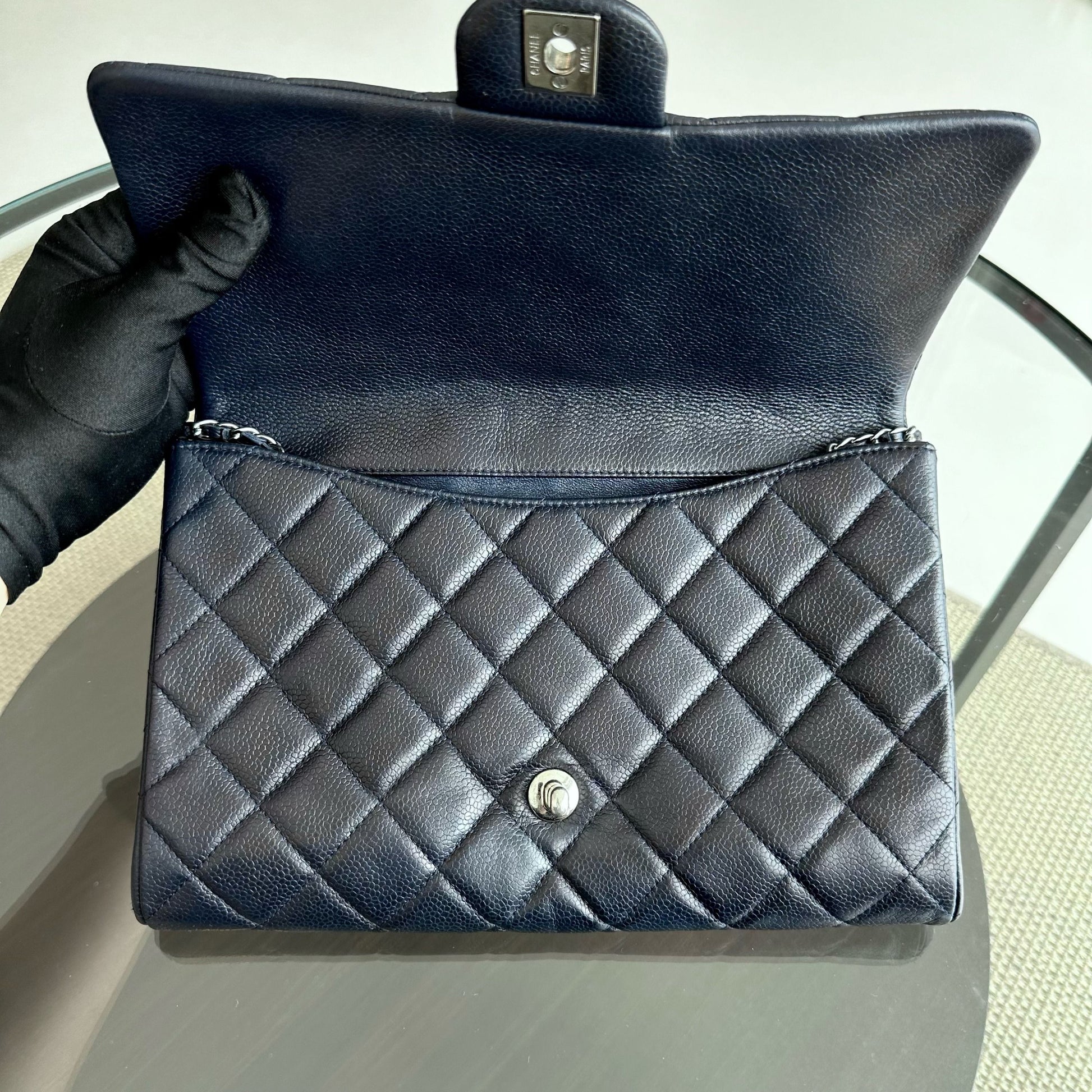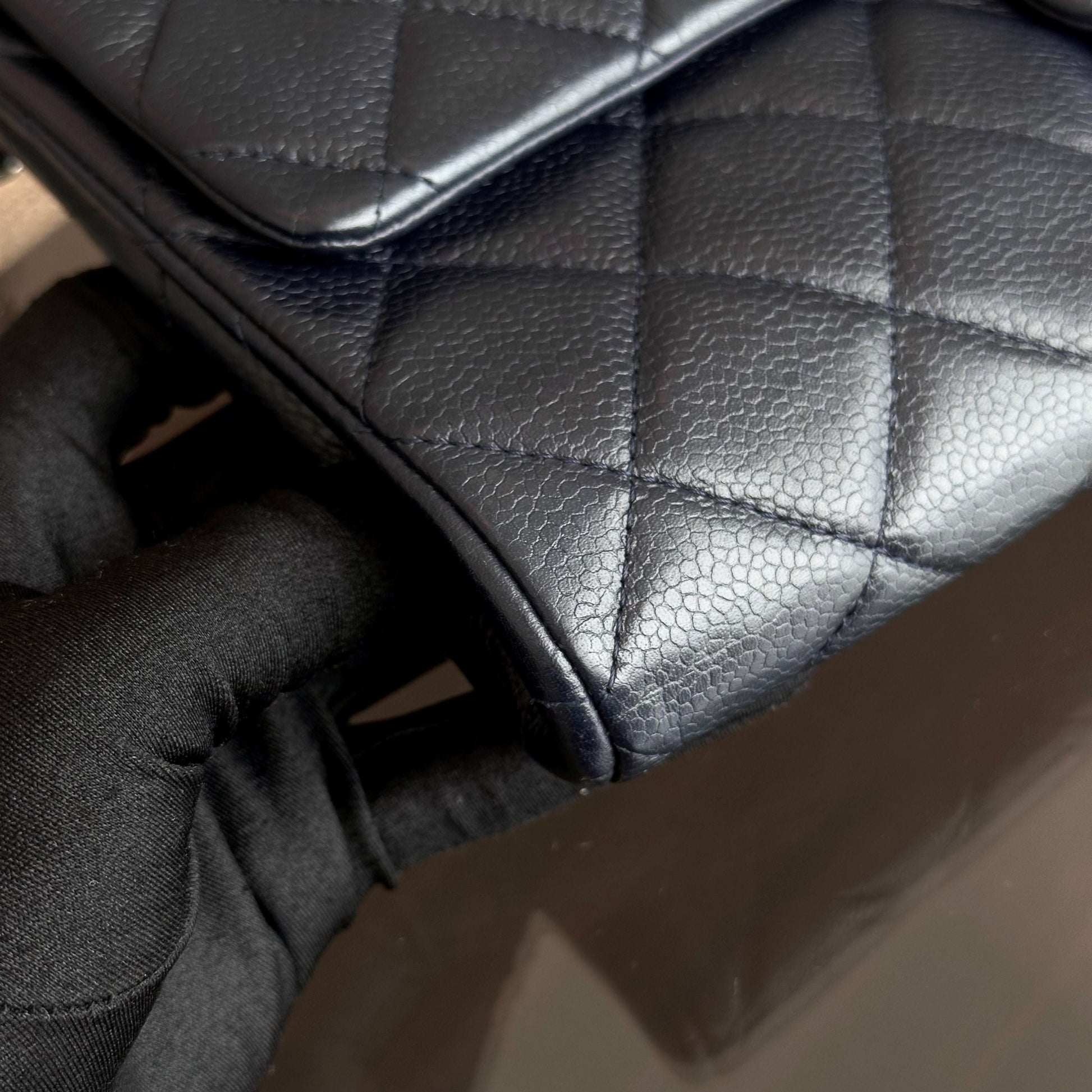 Caviar Timeless Classic Flap Clutch Calfskin Leather Dark Blue SHW No 18