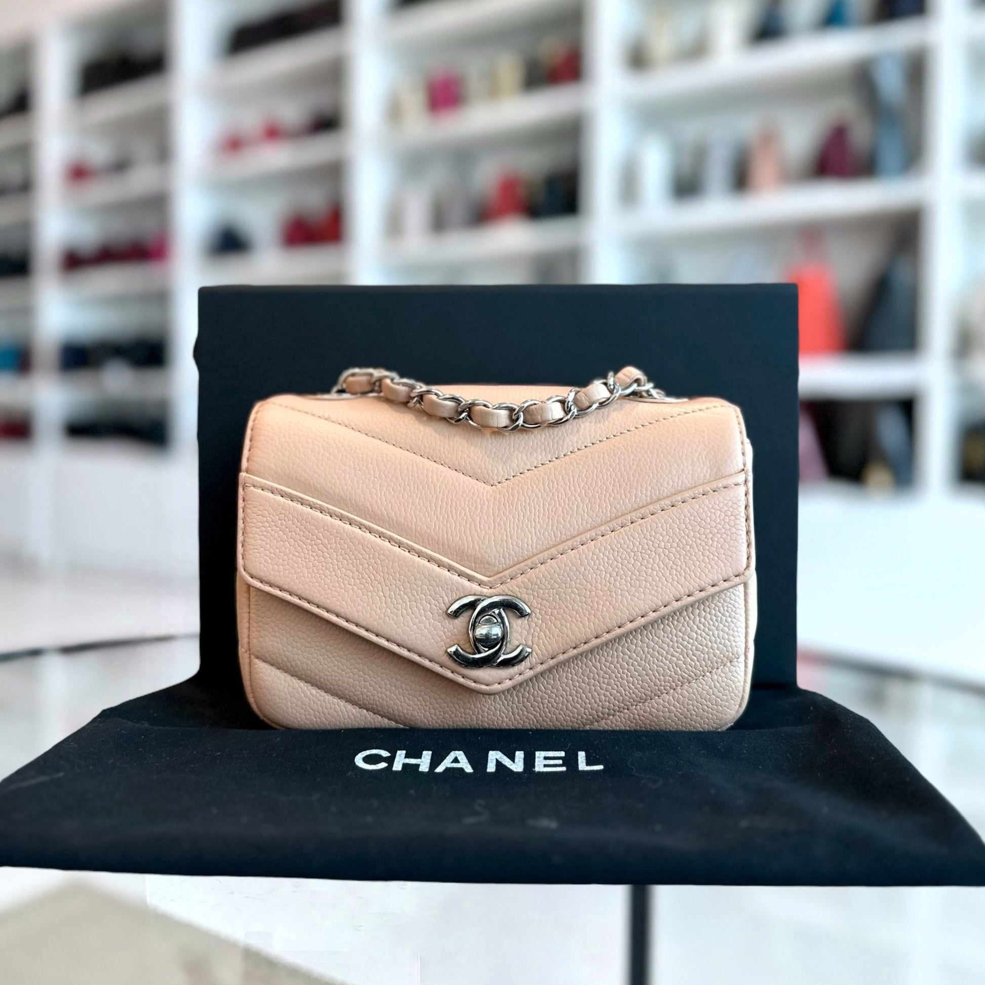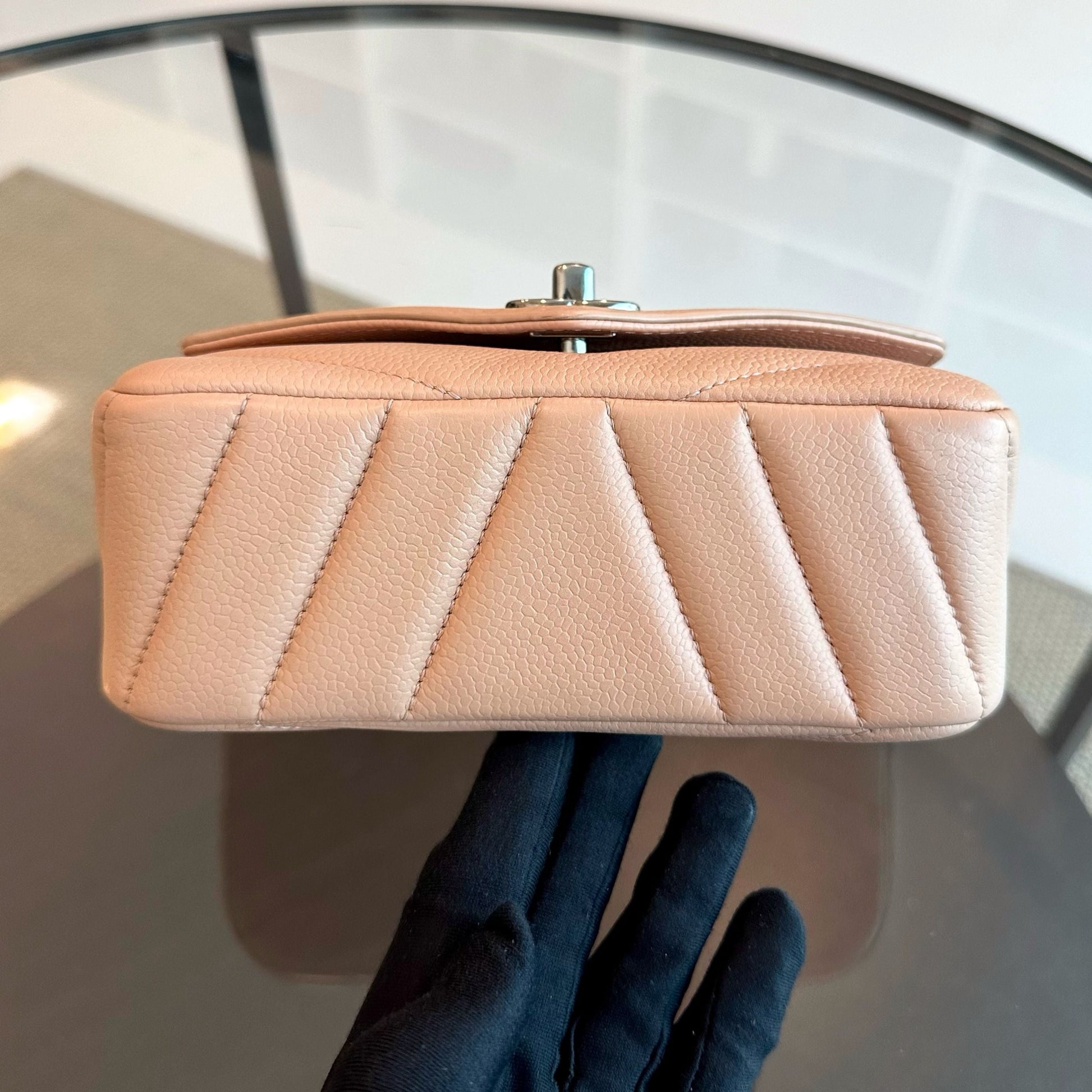Caviar V Stitch Chevron Mini Square Nude SHW No 24