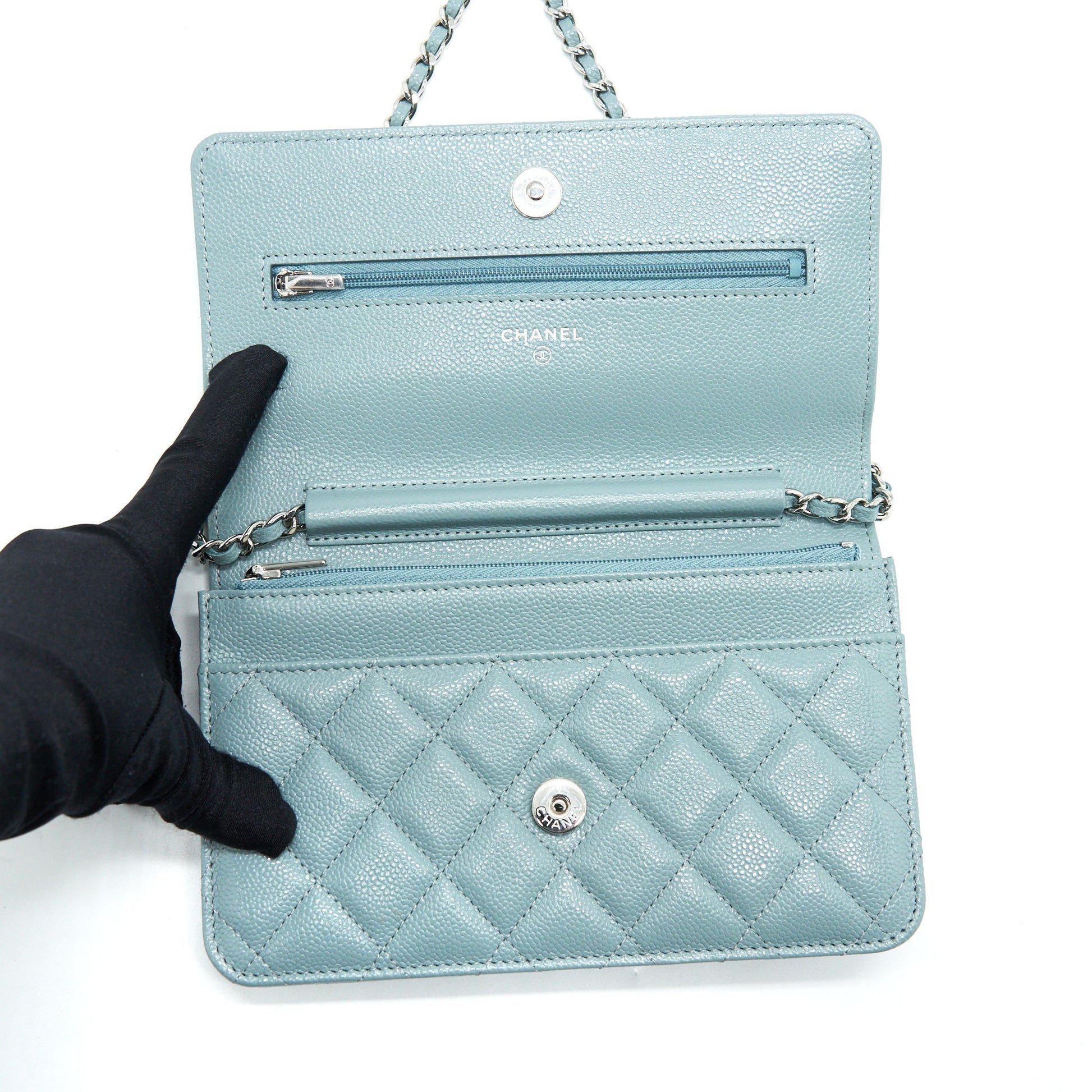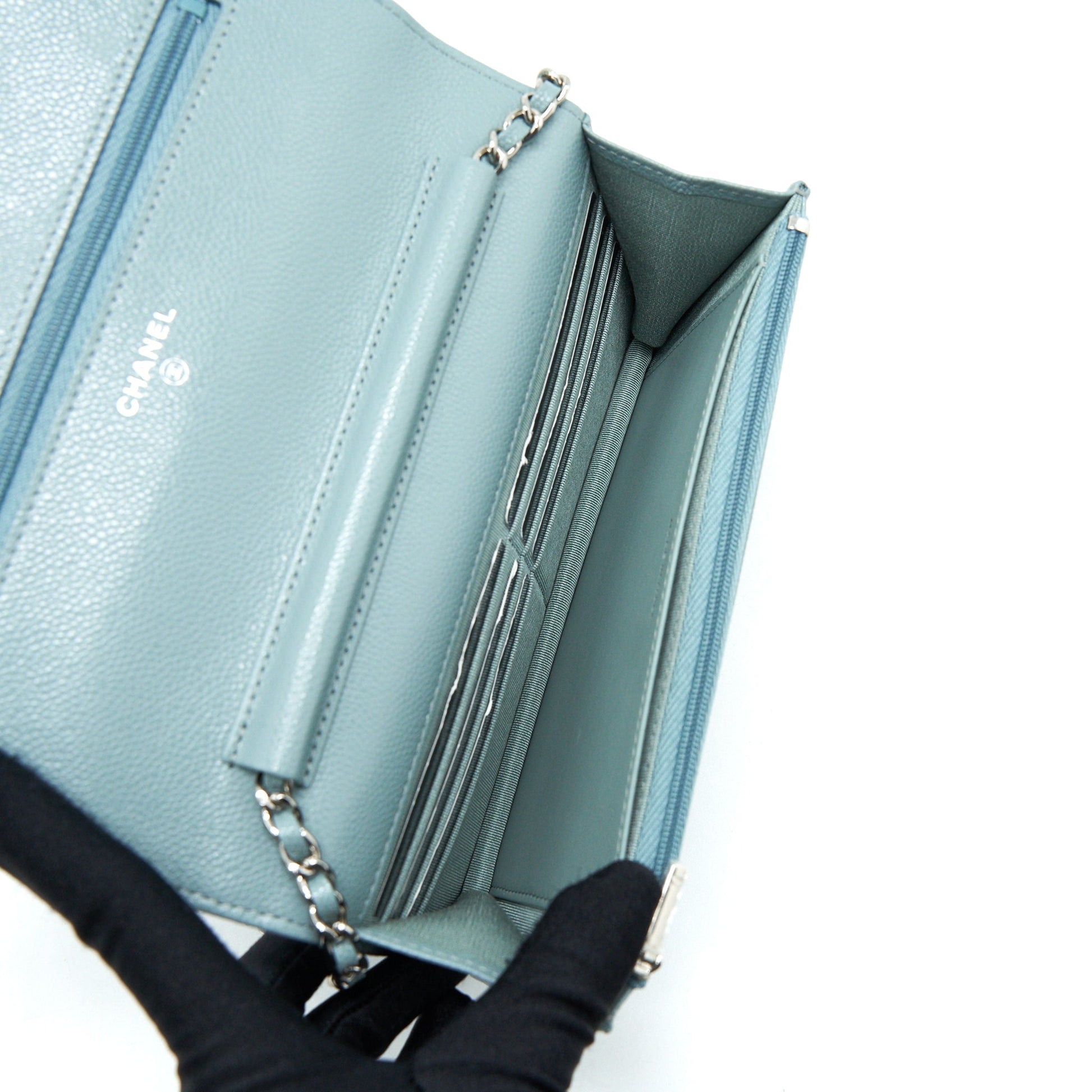 Chanel Wallet On Chain Caviar Pearly Light Blue SHW