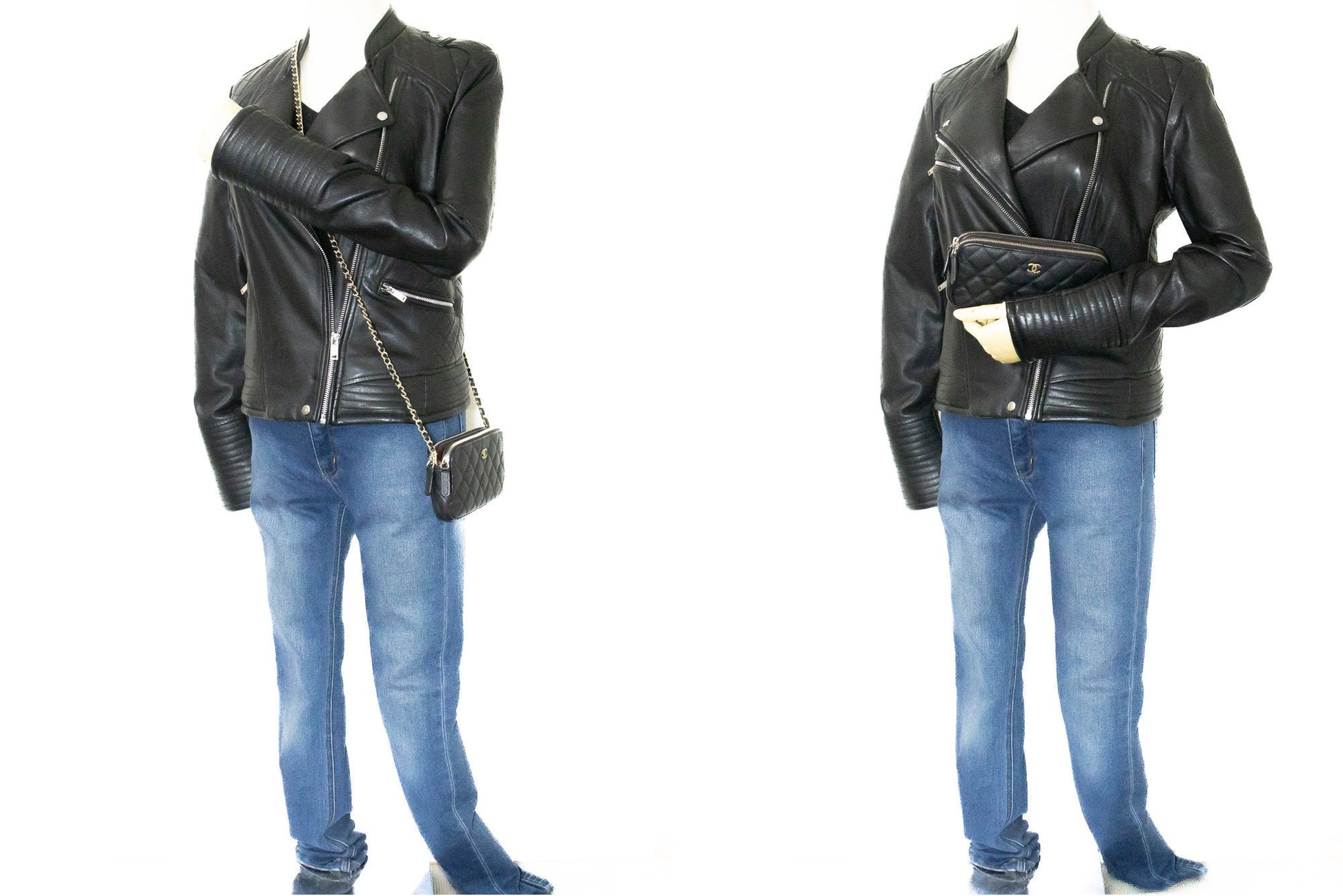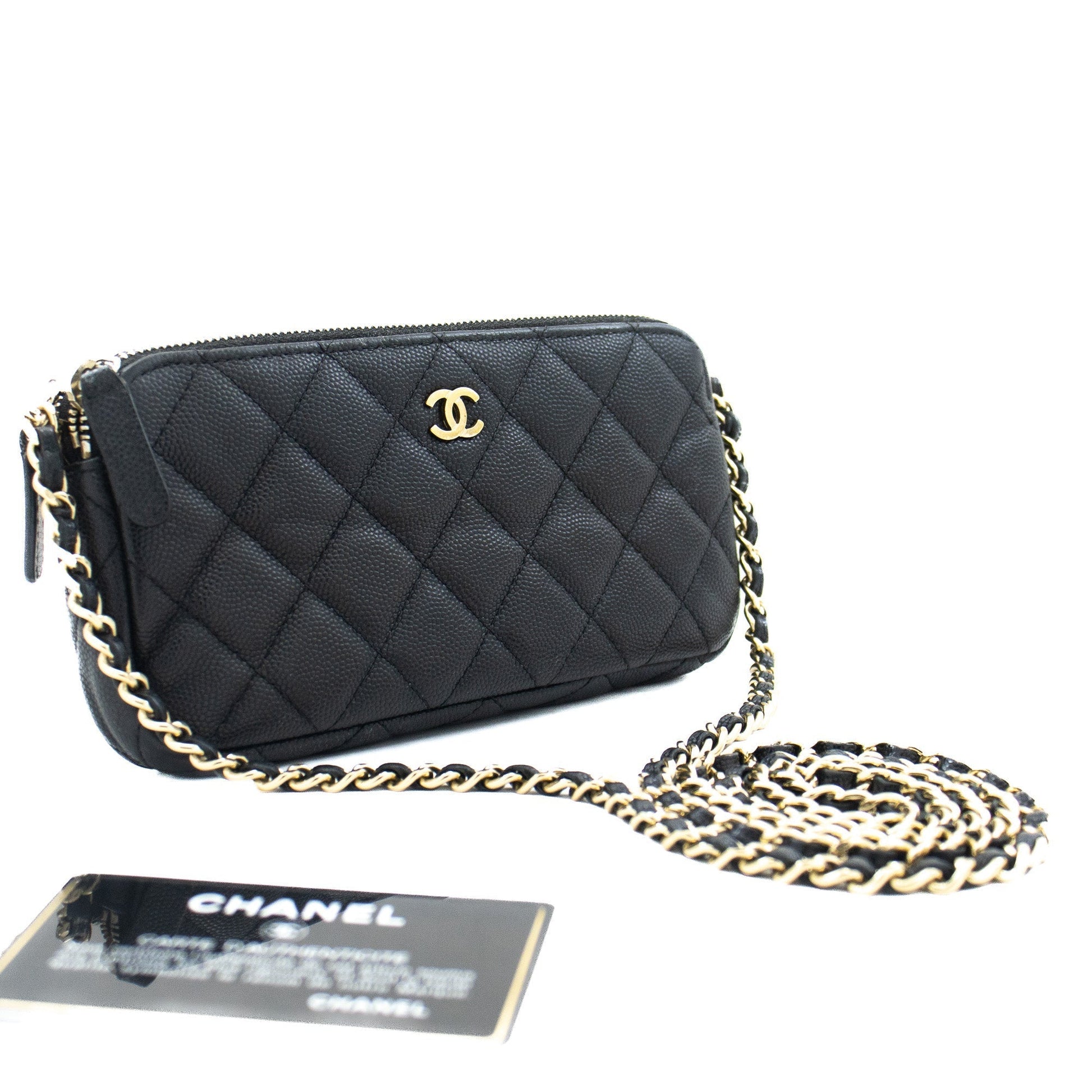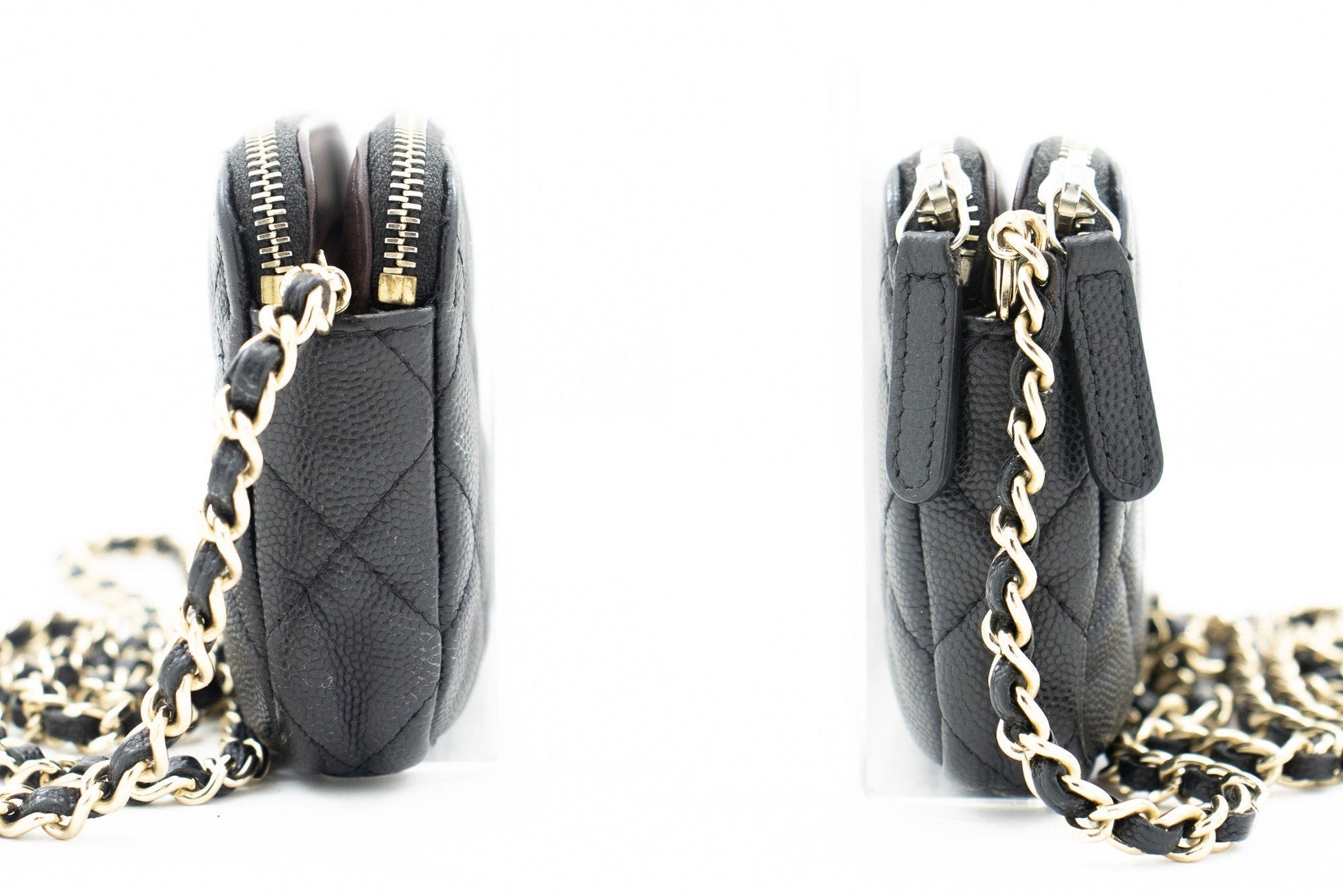 CHANEL Caviar Wallet On Chain WOC Double Zip Chain Shoulder Bag j70