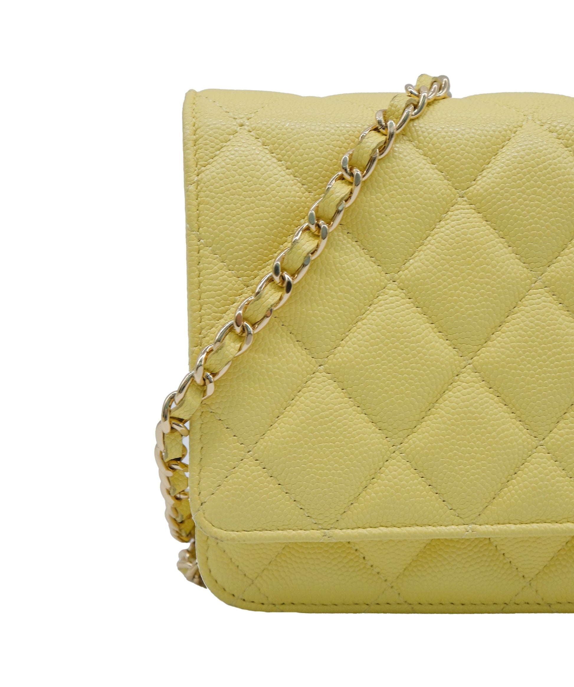 Shop this Chanel Caviar Wallet On Chain Yellow Crossbody Bag at Luxury Promise.