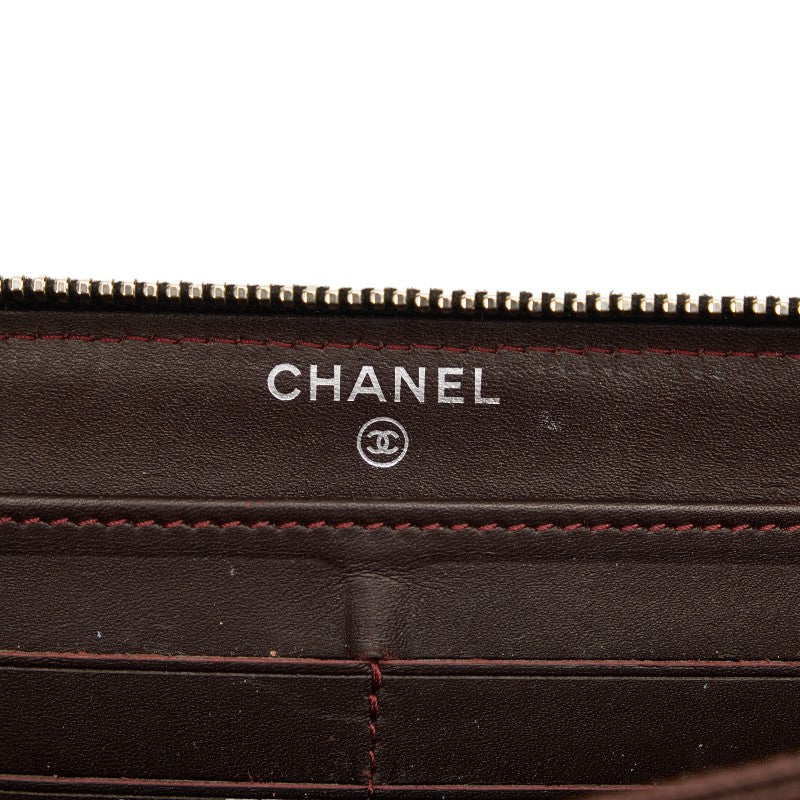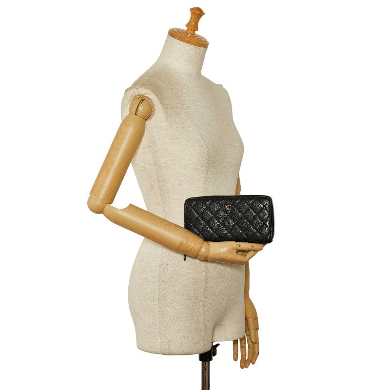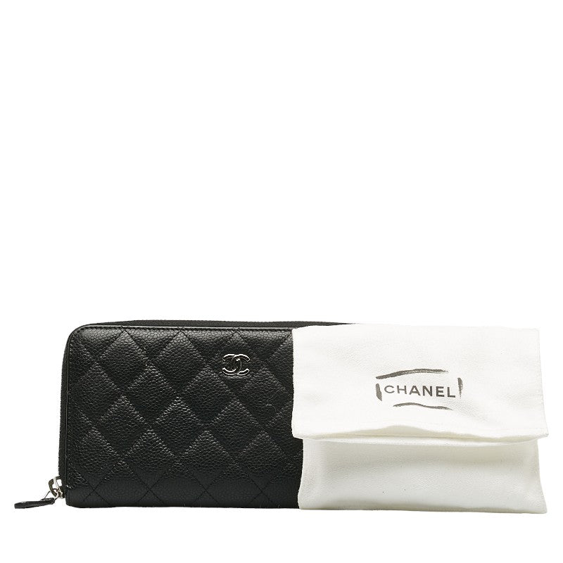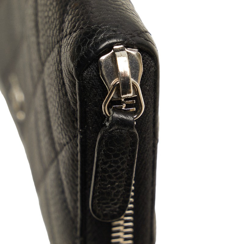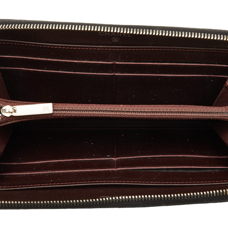 Chanel Caviar Skin Matelasse Coco Mark Round Zipper Long Wallet