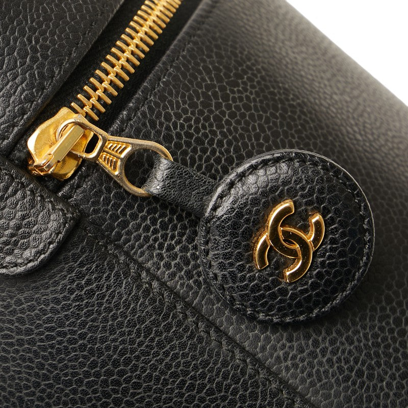 Chanel Caviar Skin Coco Mark Vanity Handbag Black Gold