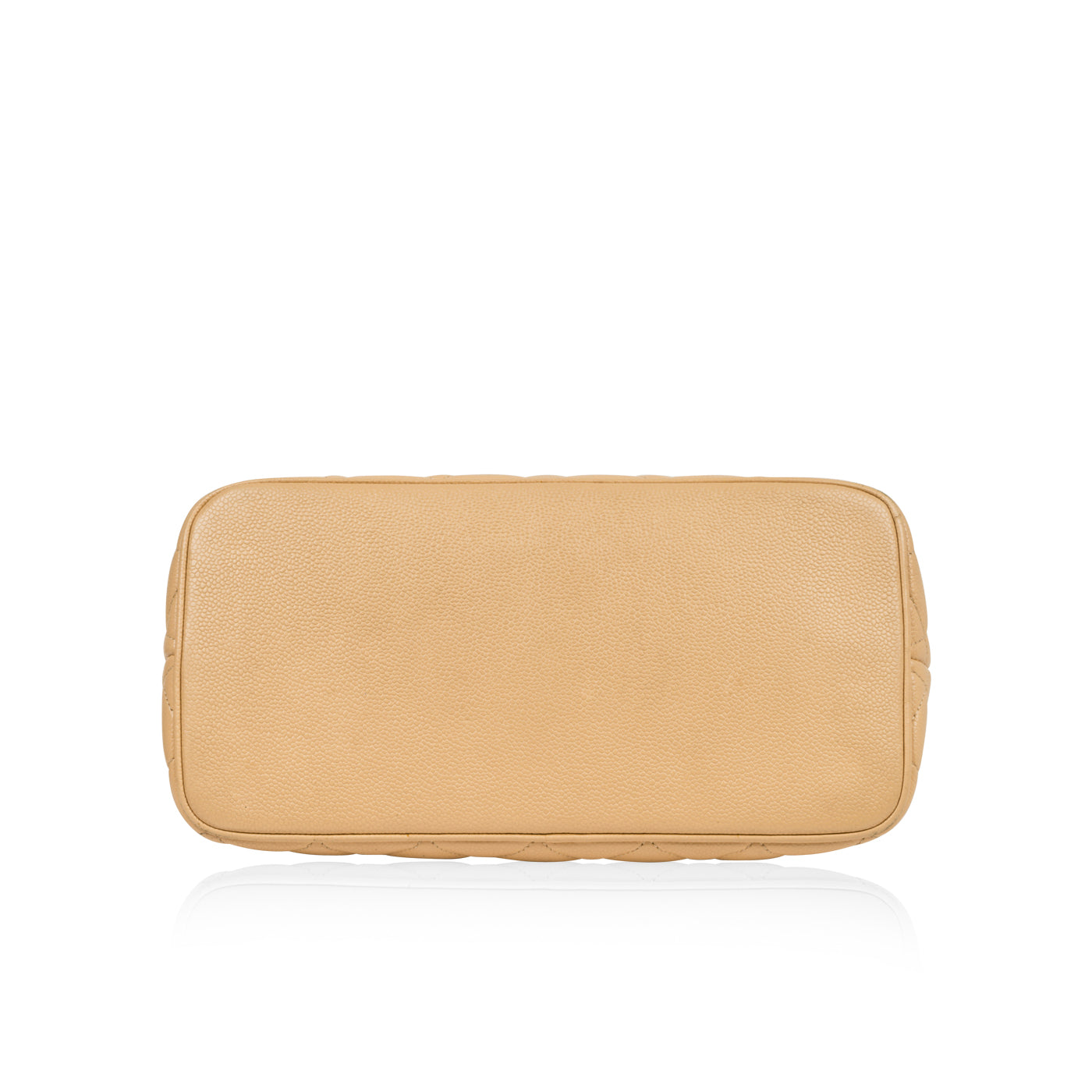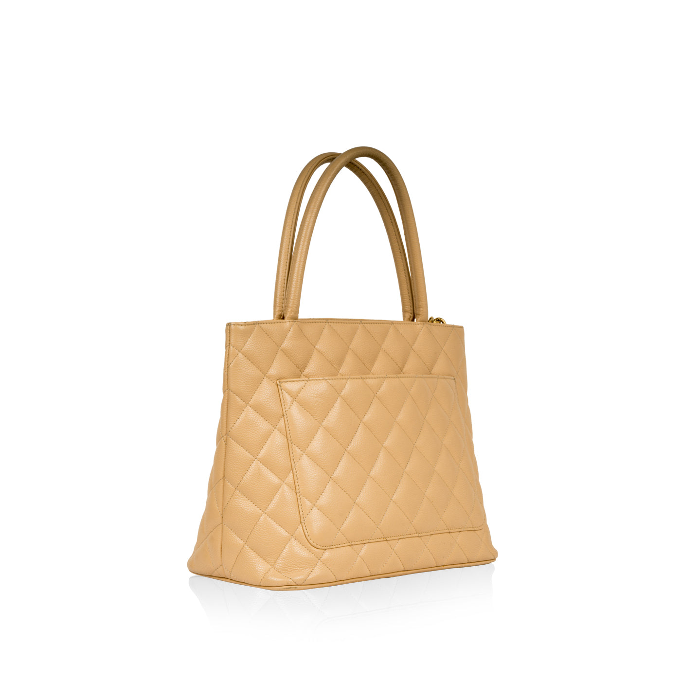 Crafted from durable, beige caviar leather, the Chanel Medallion tote is a bag that everyone simply needs in their life. The perfect balance between fashion and function, this practical bag can easily carry all your every day essentials while remaining timeless, elegant and luxurious. Whether you're off to work, running errands, or getting lunch with your friends, the Medallion is the ideal companion. Casual but chic enough to be paired with a smarter look, this gorgeous bag features an embossed CC stitched front logo, gold tone hardware and two top handles. Given its neutral, beige hue, this bag can be paired with any monochromatic or colourful outfit in your wardrobe. For the woman with a love for practical luxury, the Medallion is the one for you.