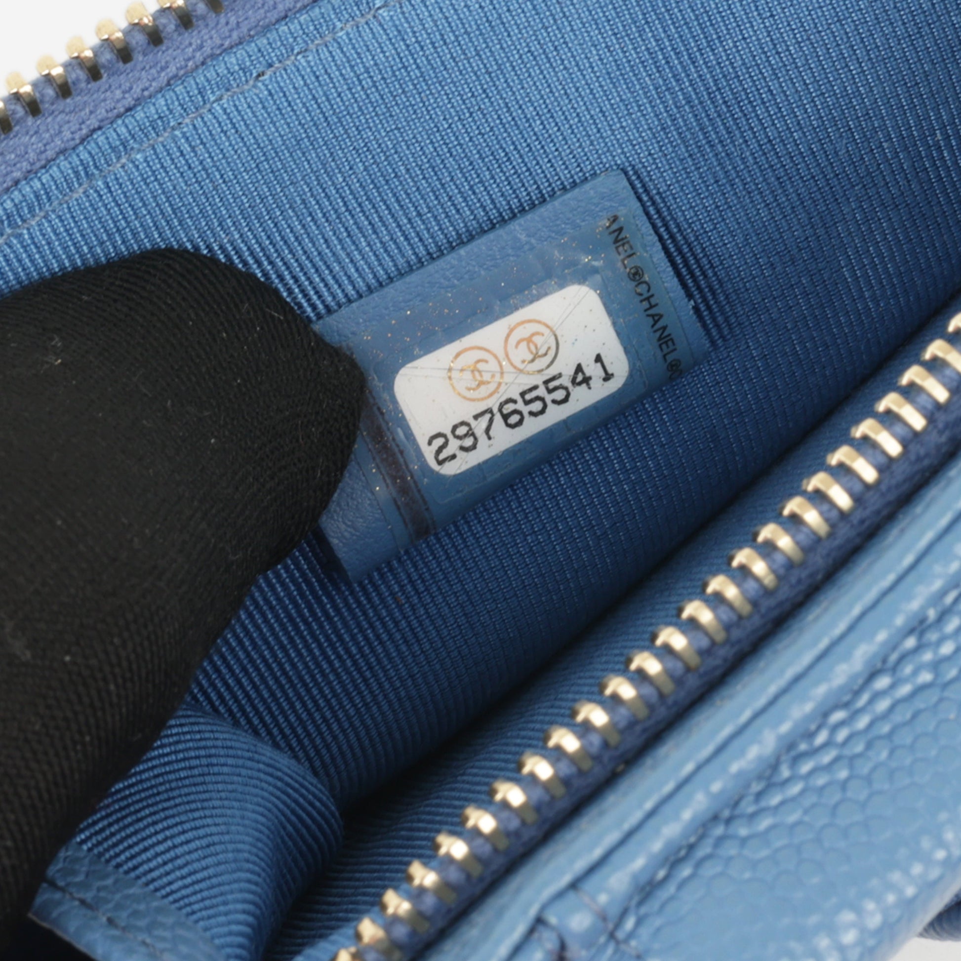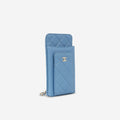 Chanel CC Phone Holder Blue Caviar Champagne Gold Hardware