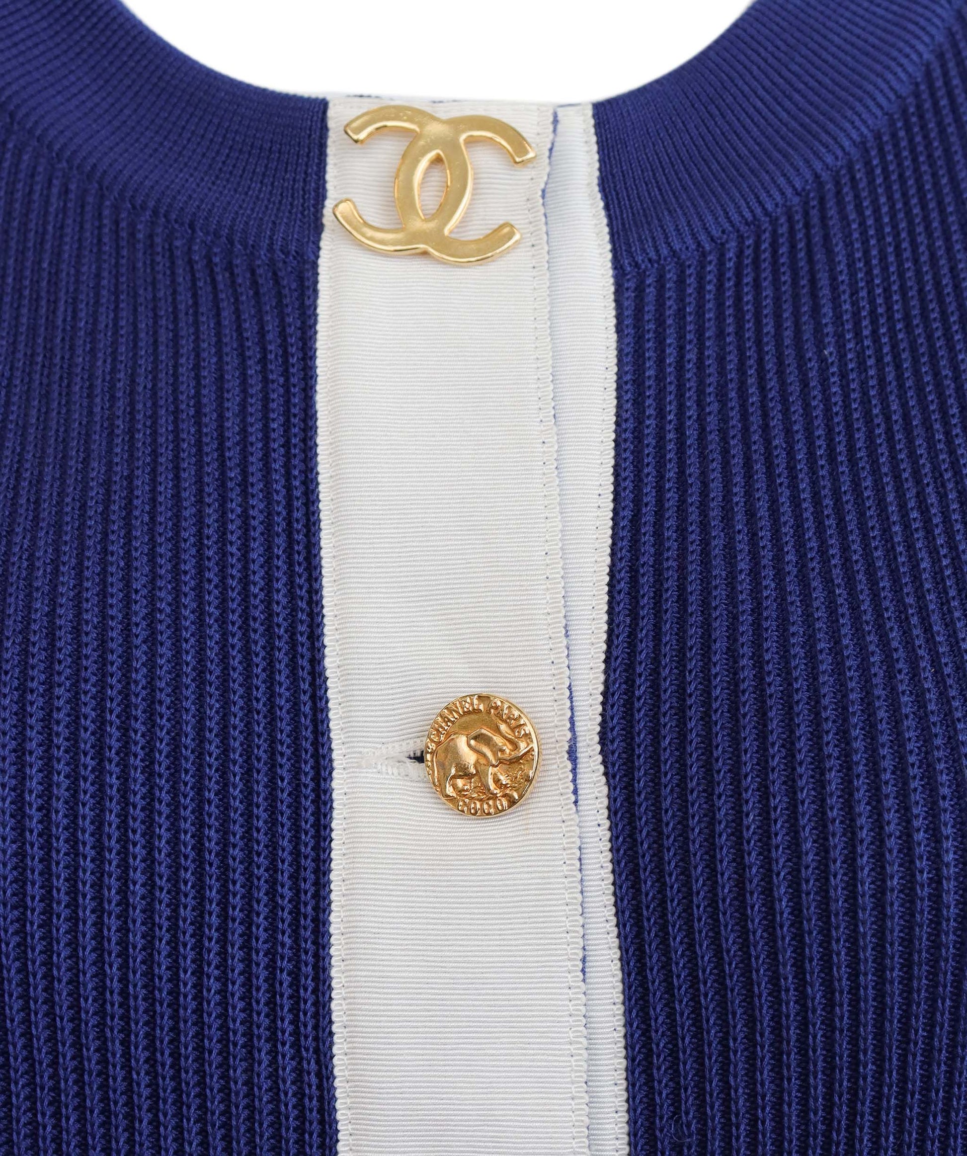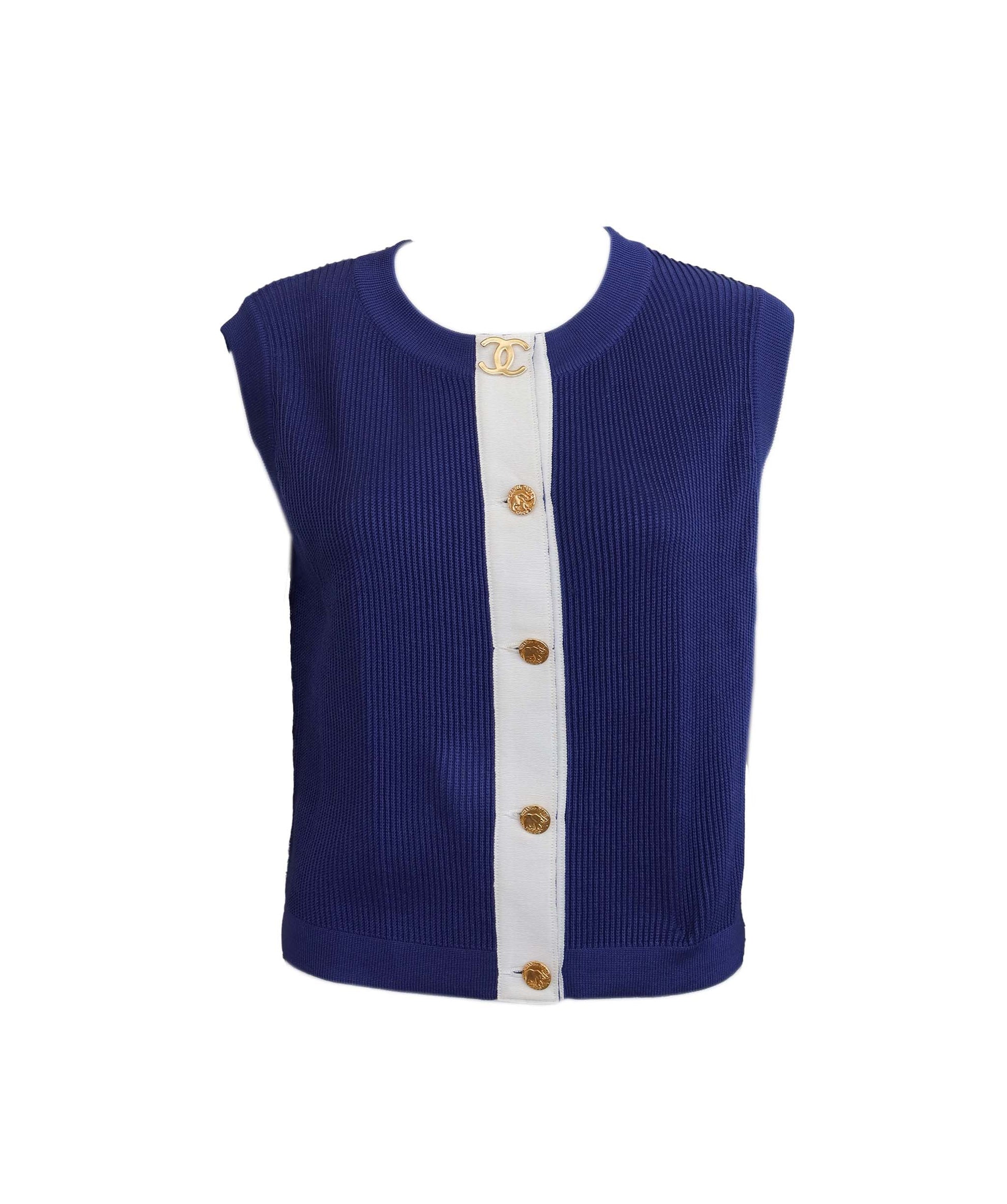 Shop this stunning Chanel CC Pink Ribbed Top Blue at Luxury Promise.