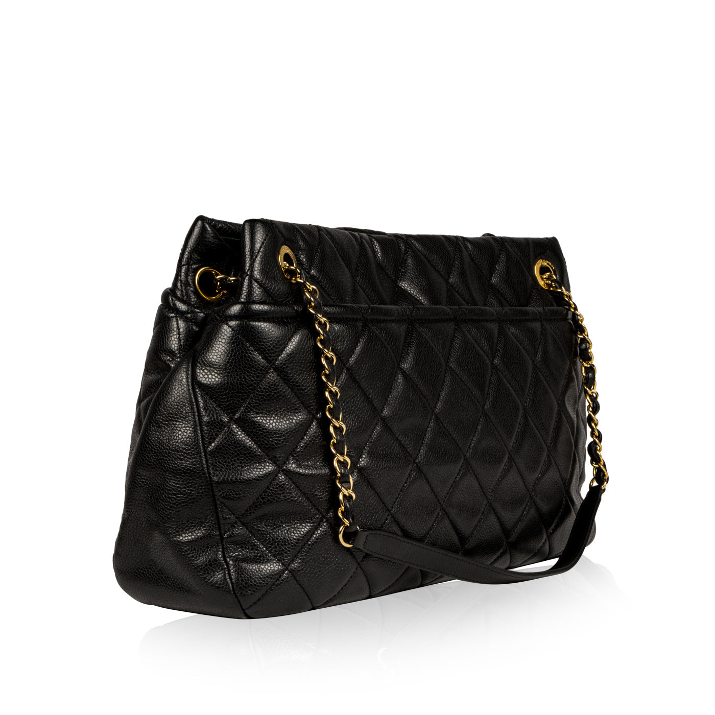 Chanel presents the CC soft timeless tote a more spacious and relaxed play on the extremely popular Grand Shopping Tote. Presented in soft caviar leather and featuring the brand’s iconic quilted pattern alongside a large CC stitched logo, the soft timeless shopper is basically your glamorous yet casual day-to-day, go-to bag. A classic and iconic patterned shoulder bag from the brand, the timeless shopper is that bag you'll use for any and every occasion. Going to work? Running errands? Dinner party with friends? Travelling? The cc tote is the ideal companion to have by your side.