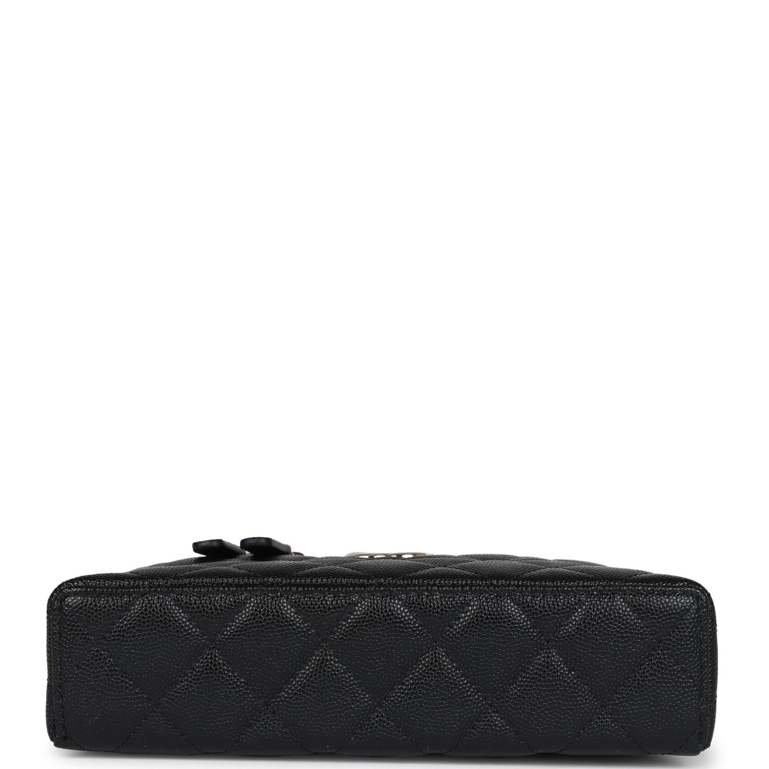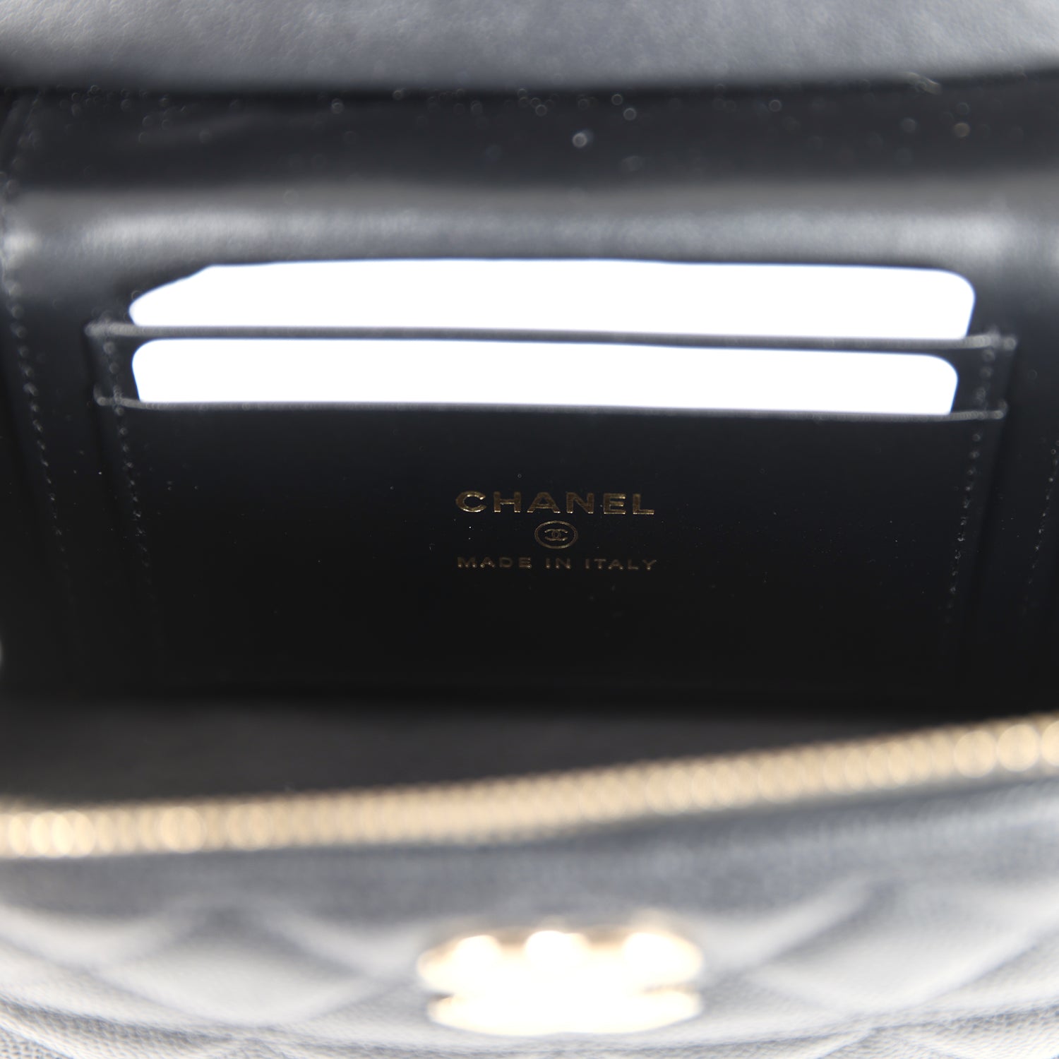 Chanel CC Top Handle Long Vanity Case With Chain Black Caviar Light Gold Hardware